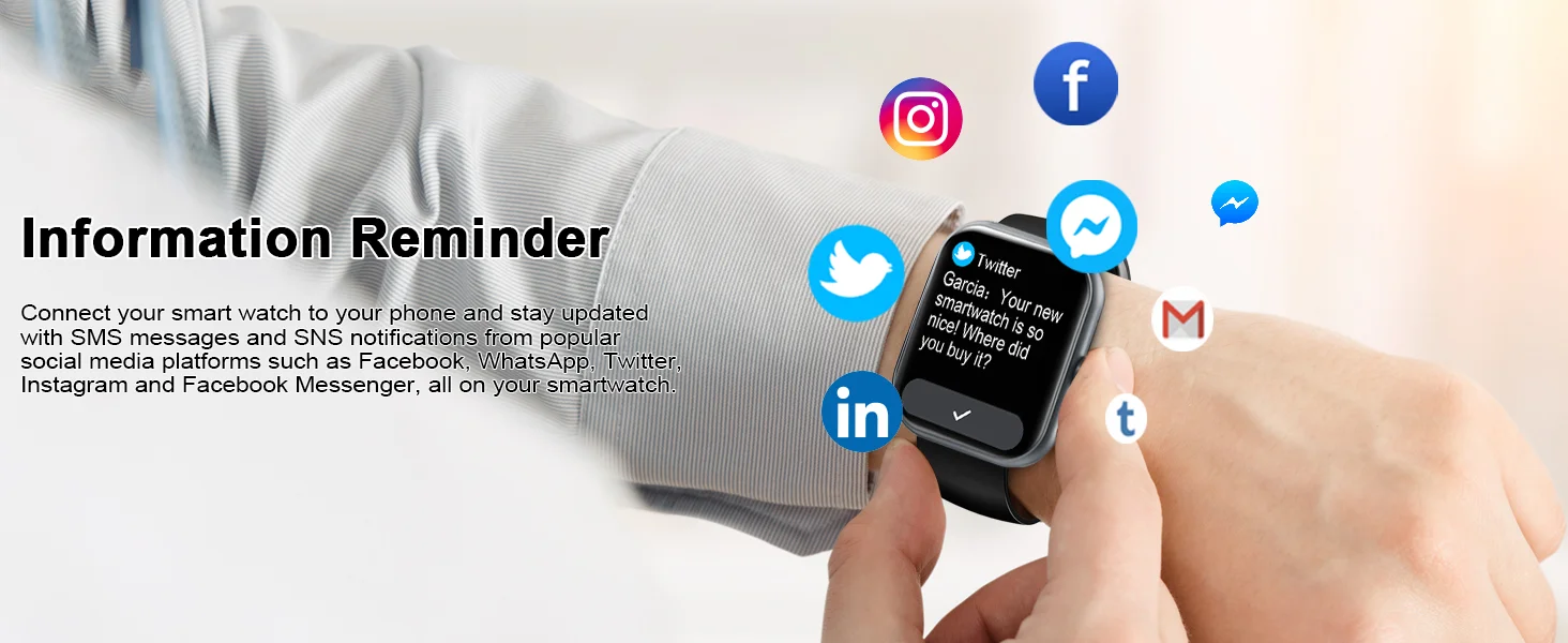 The smartwatch not only tracks your fitness but also keeps you connected to your smartphone. Receive notifications for calls, texts, and social media updates right on your wrist, ensuring you never miss an important message while focusing on your activities.