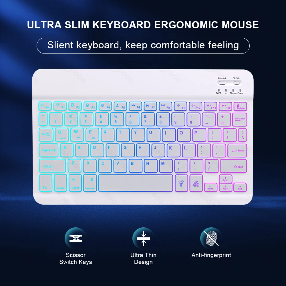 - Compatible systems: iOS (Fn+E), Android (Fn+Q), Windows (Fn+W).