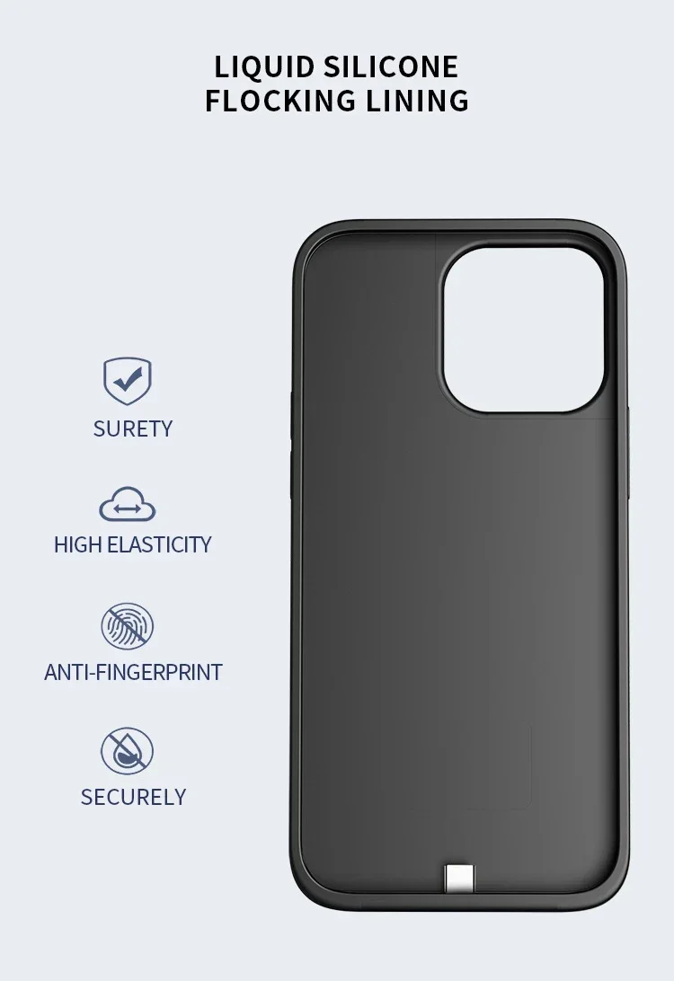 This battery charger case is designed for the iPhone 15 Pro Max and iPhone 15 Plus models. It works as a protective back cover, portable power bank, and charging case in one design, helping extend battery life while keeping the phone covered during daily use.