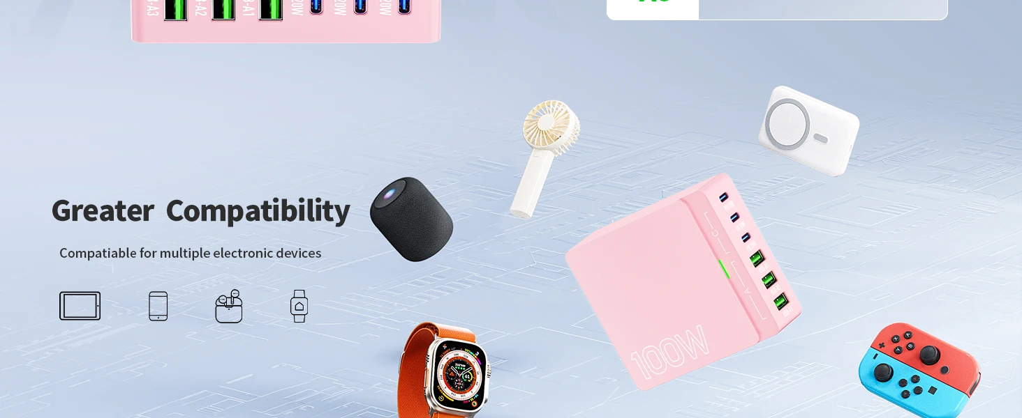 100W GaN USB C Charging Hub 6-Port PD Charger