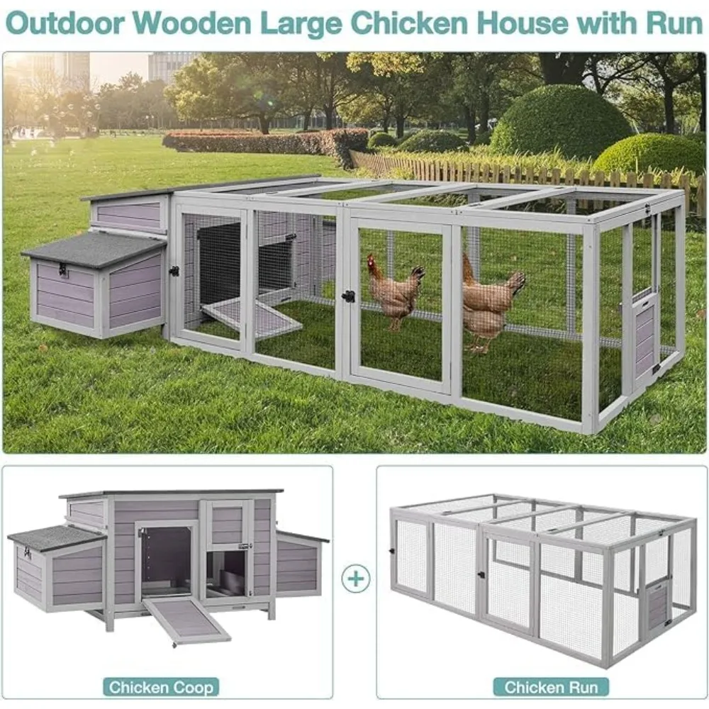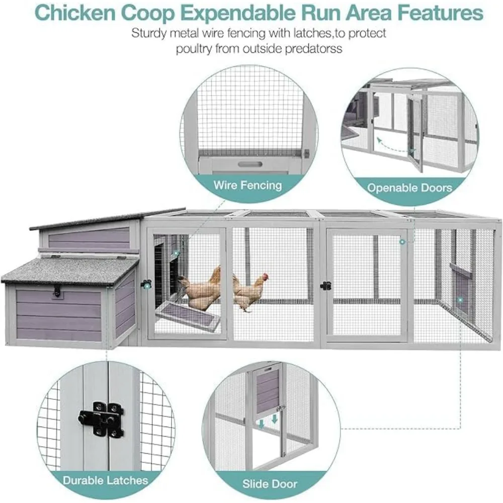 - Expansive Outdoor Run for Safety and Freedom: The chicken coop run extension is more than twice as long as others, providing an additional 21.8 ft² of activity space. This gives your chickens plenty of room to roam freely and safely without fear of predators.