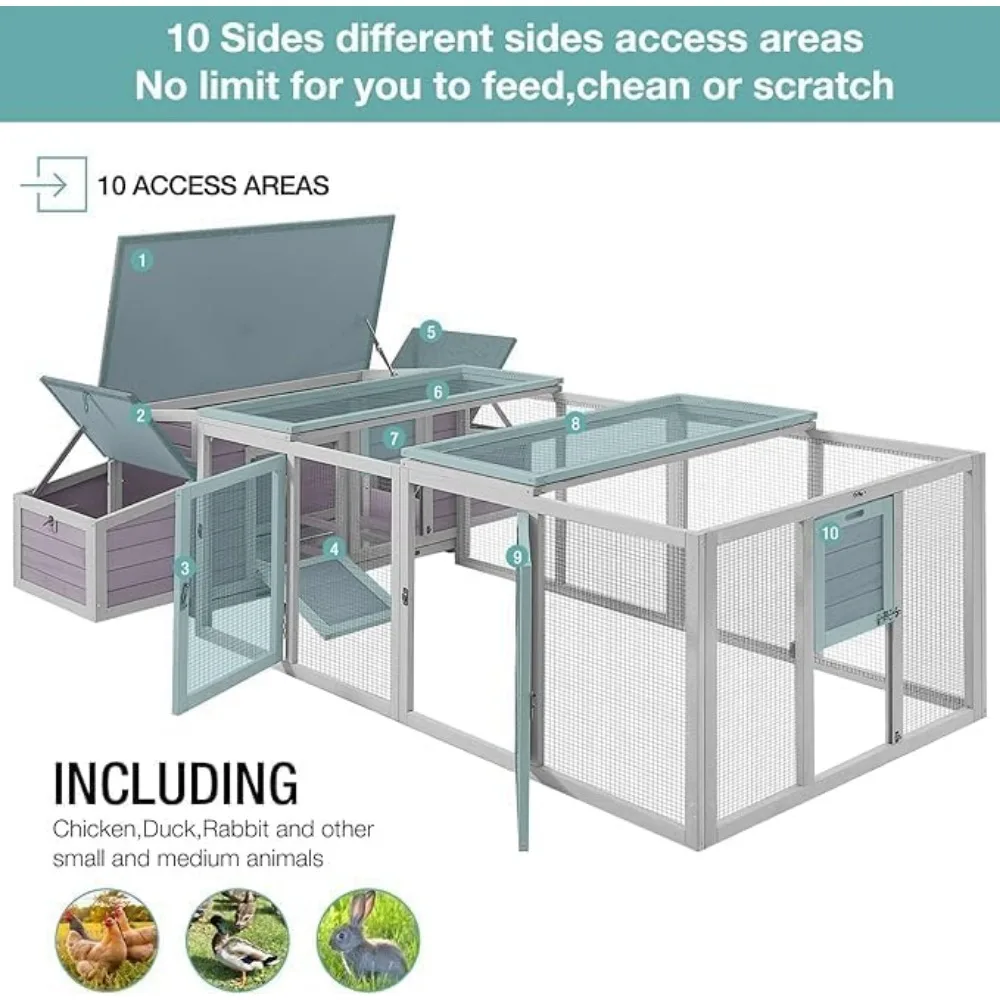 - Effortless Cleaning and Maintenance: Comes with a removable, leak-proof tray for easy cleaning and a wire fence for optimal ventilation and odor reduction. All areas of the coop are easily accessible through four convenient passages, making maintenance a breeze.
