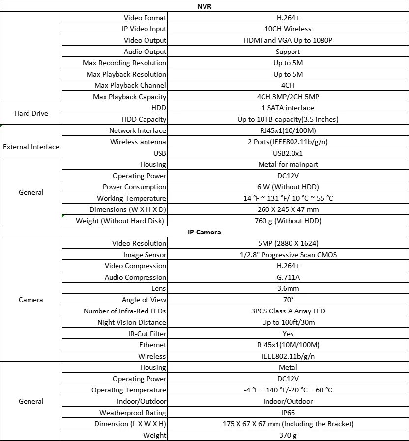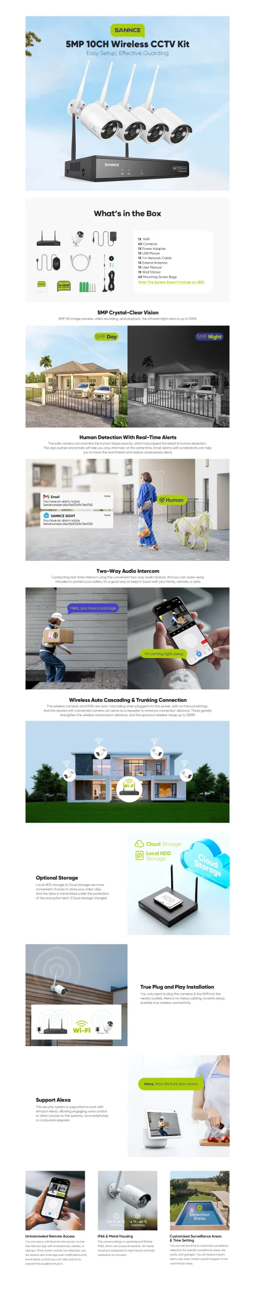 10CH 5MP SANNCE Wireless Security System + 4 IP Cameras