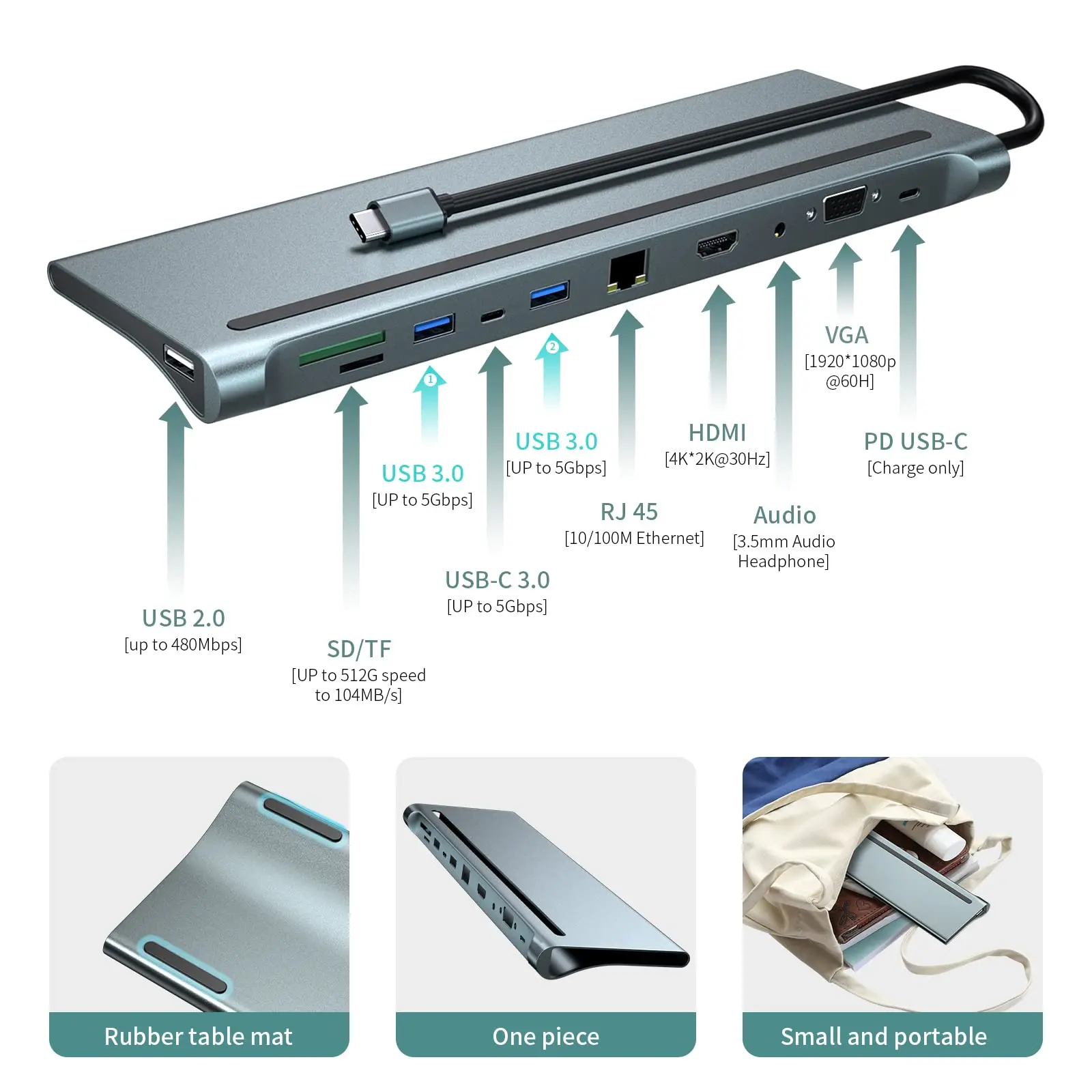 12-in-1 USB-C Docking Station Dual 4K HDMI VGA