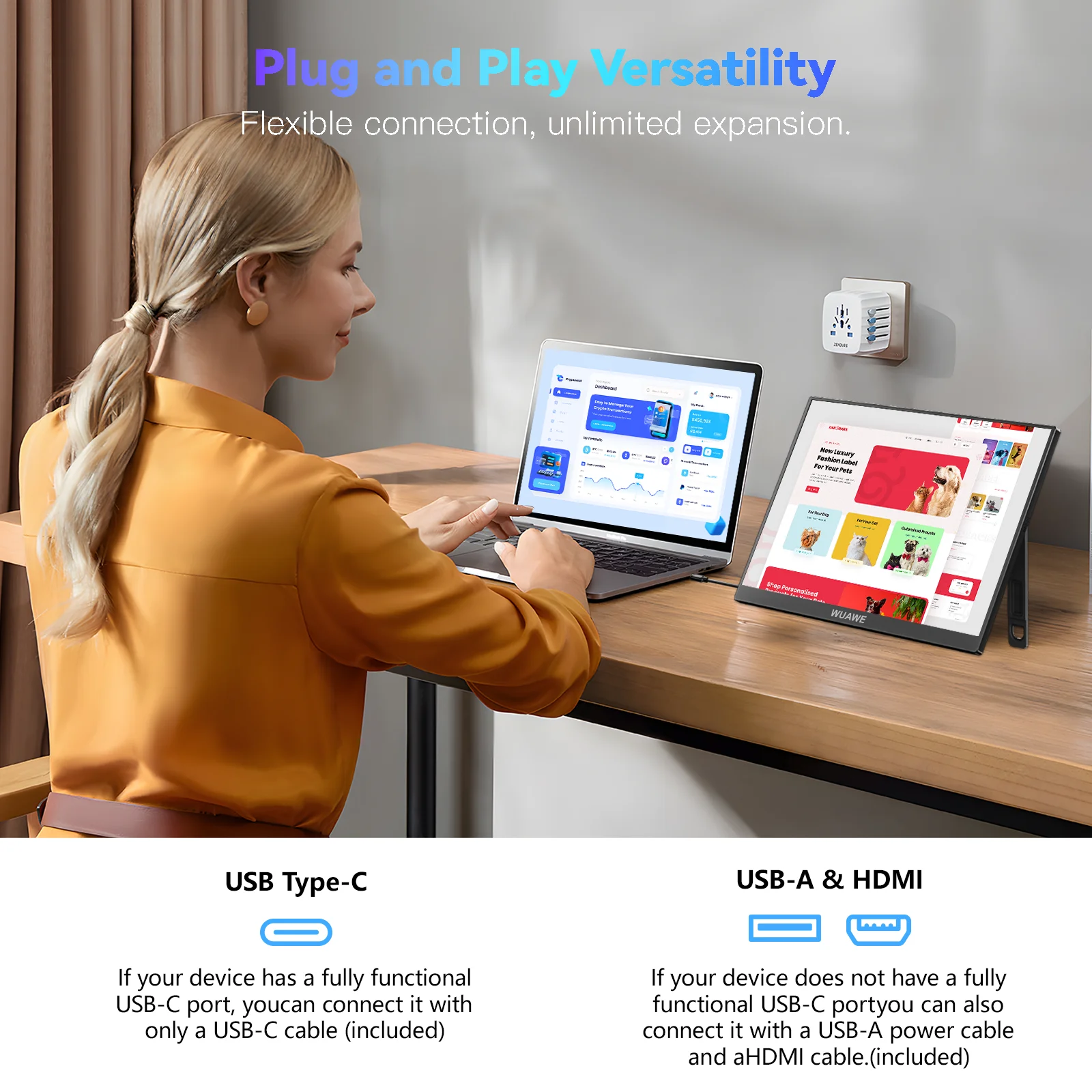 - Versatile Connectivity: Equipped with Type-C and HDMI ports, compatible with laptops, gaming consoles, and smartphones.