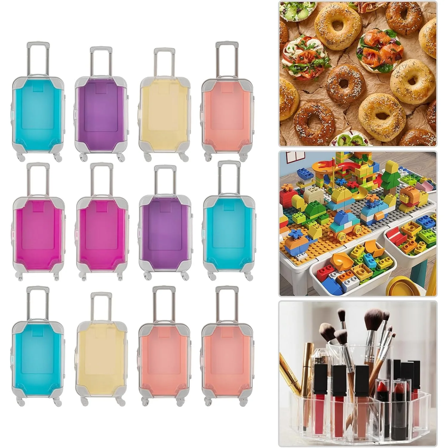 This set of mini trolley cases is made of durable ABS and designed to look like real suitcases. Each piece is compact and practical for play or for storing small items. The clear, colorful bodies make it easy to see what’s inside so you can find things quickly.