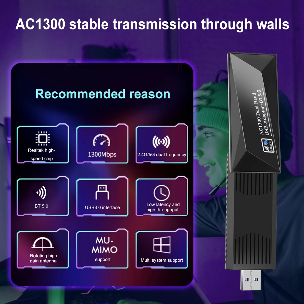 - High-Speed Connectivity: Achieves speeds up to 1300Mbps, ensuring smooth and uninterrupted internet usage.