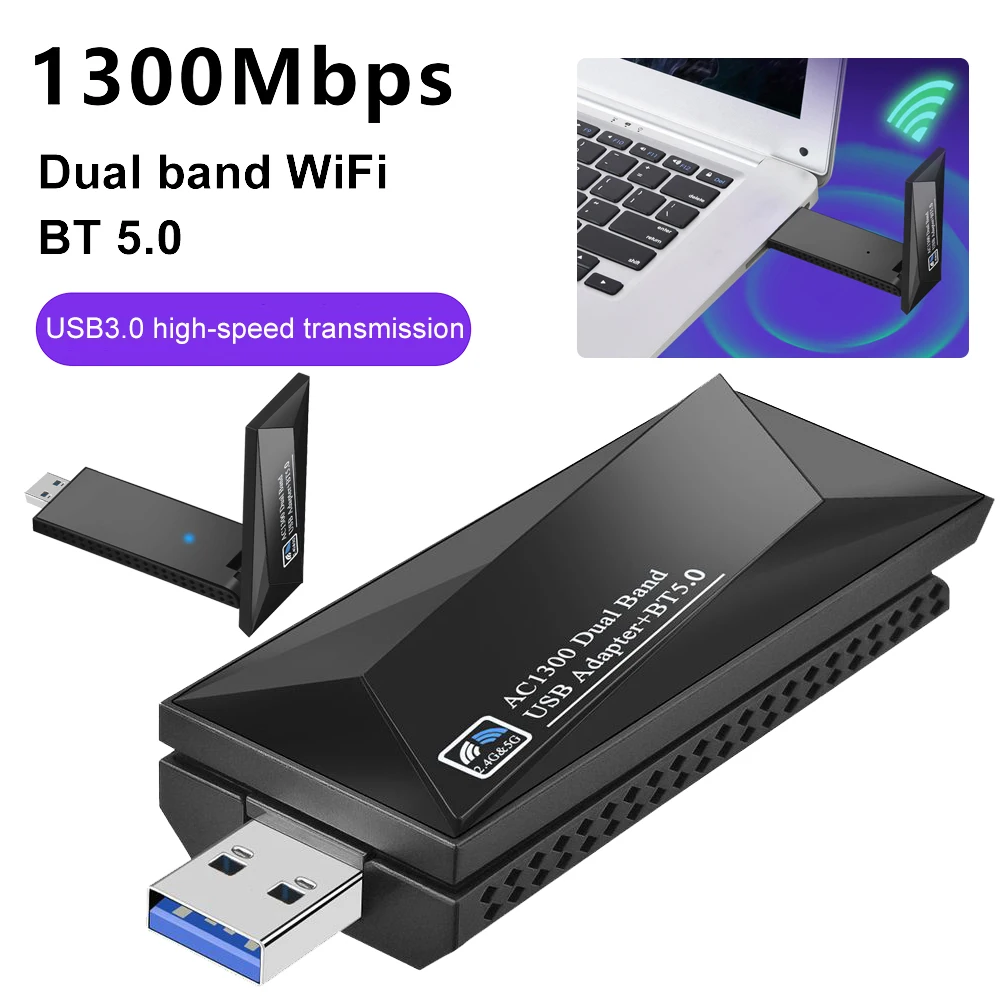 The 1300Mbps USB 3.0 WiFi Adapter is an essential device for enhancing wireless connectivity on your PC or desktop. This dual-band WiFi dongle offers robust and reliable internet access, supporting both 2.4GHz and 5GHz frequencies. It ensures high-speed data transfer rates, making it ideal for activities such as online gaming, HD video streaming, and large file downloads.