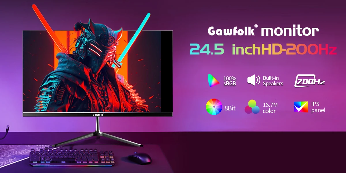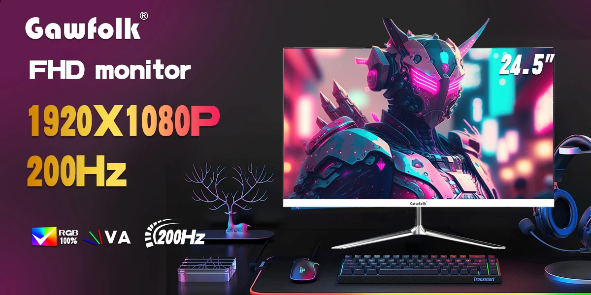 Level up with a 24.5-inch 200Hz gaming monitor built for fast reactions and clean clarity. This Gawfolk Full HD 1080p display is tuned for competitive play, smooth scrolling, and everyday productivity, giving you crisp detail at 1920 x 1080 and ultra-fluid motion for shooters, racing games, and esports titles.