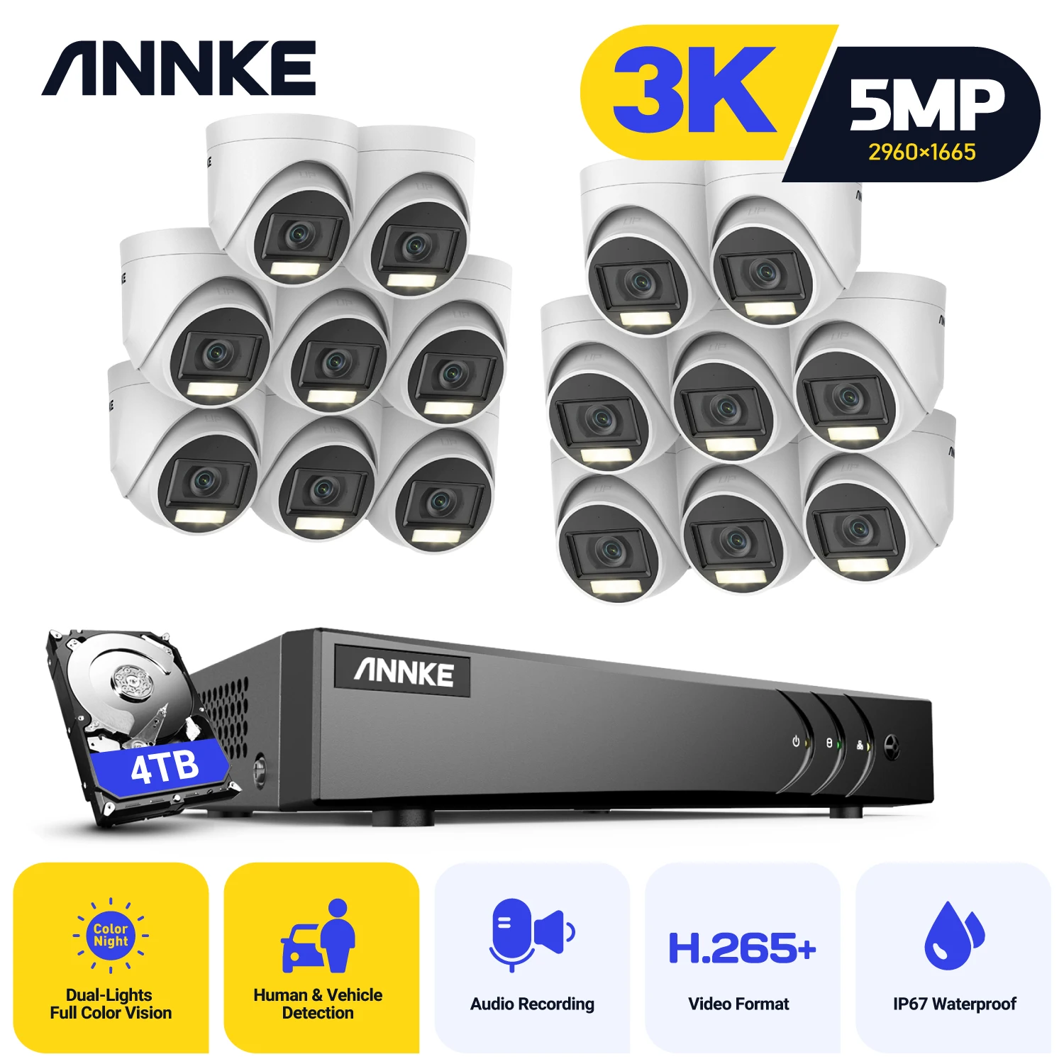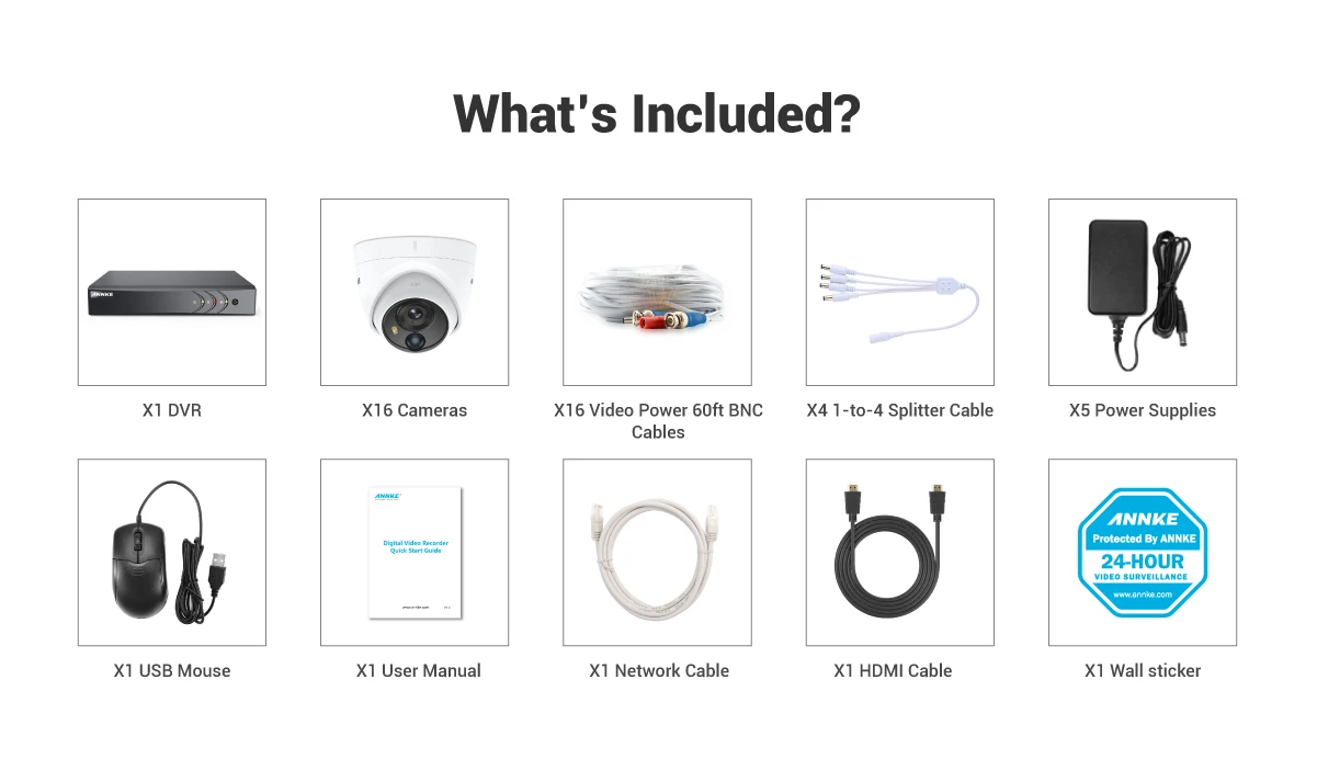 16CH 5MP ANNKE CCTV Kit with IP67 Motion Detection Cameras