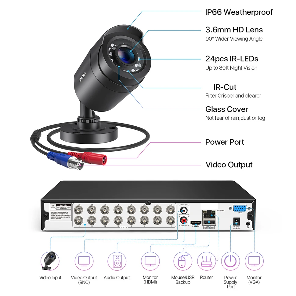 16CH ZOSI 1080P DVR CCTV Outdoor Security Camera Kit