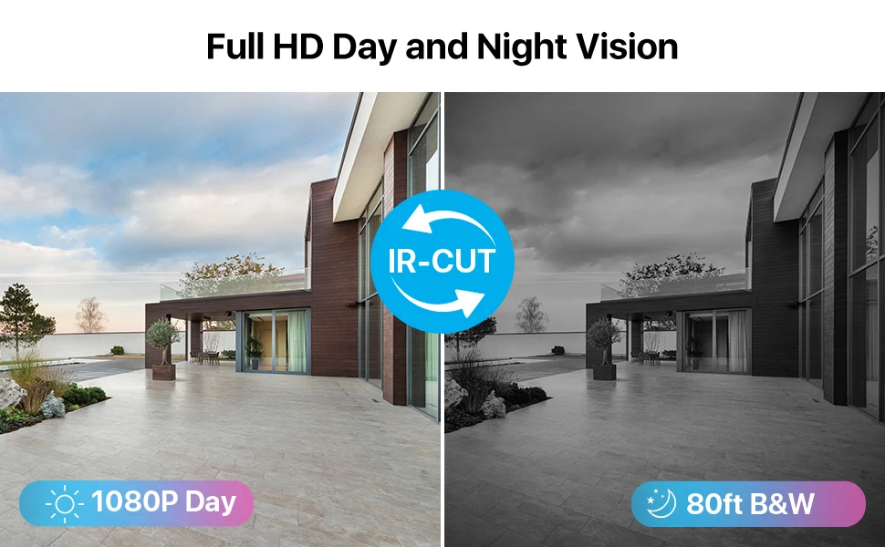 Wired Outdoor Camera with weatherproof Housing Work fine whether in rainy/windy/foggy days. Easy to install and adjust whether outdoor & indoor.