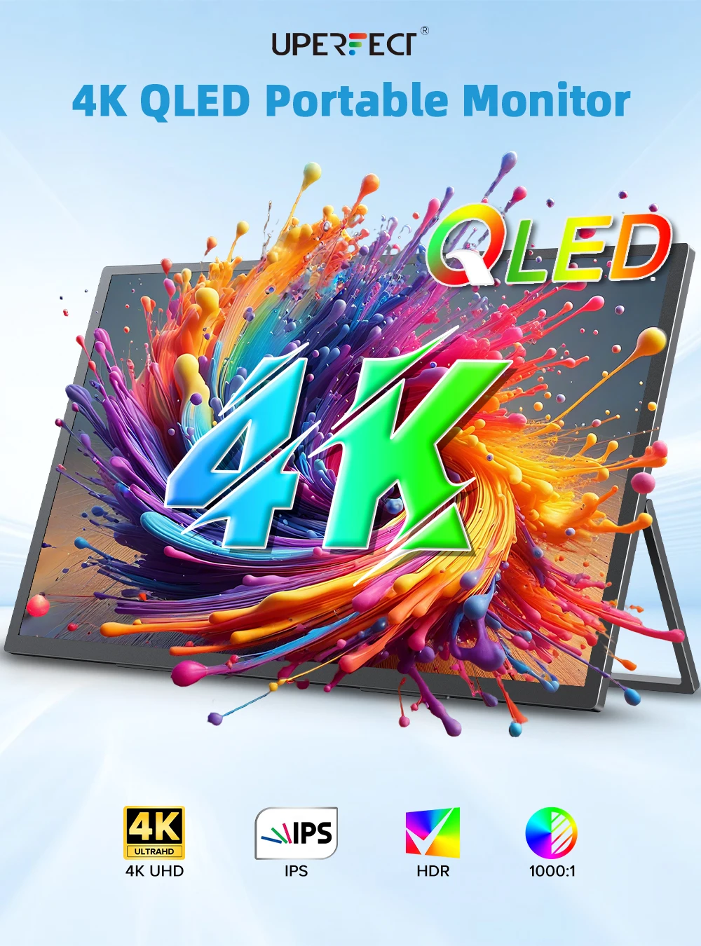 18.4 inch 4K QLED portable monitor built for travel, productivity, and clean entertainment. This slim portable display gives you a sharp 3840 x 2160 UHD picture on a roomy 18.4 inch screen, making it easy to run a true dual-screen setup anywhere. It is a strong fit for meetings, business travel, studying, content review, and a bigger on-the-go screen for movies or casual gaming.