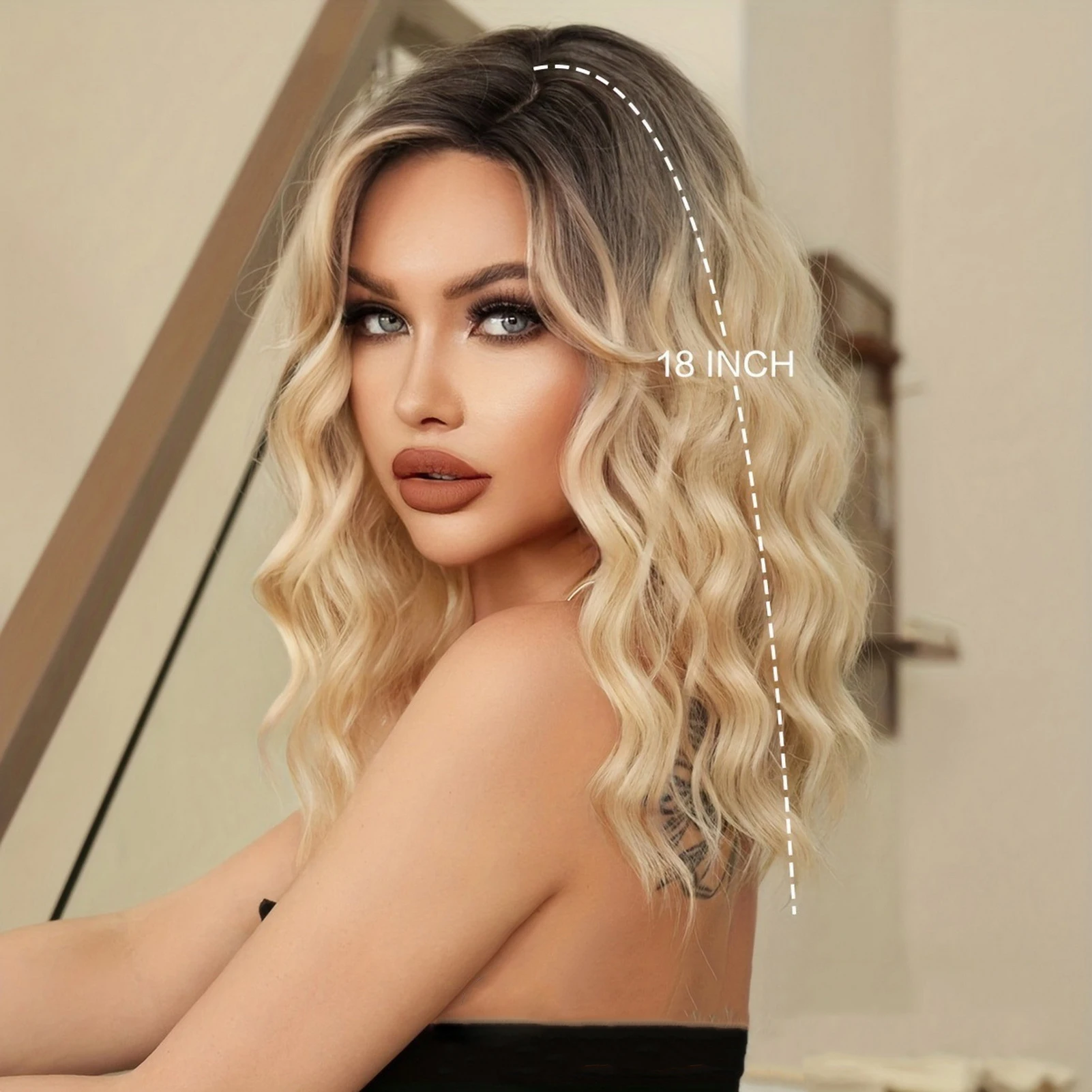 18-Inch Gradient Long Curly Cosplay Wig for Womens