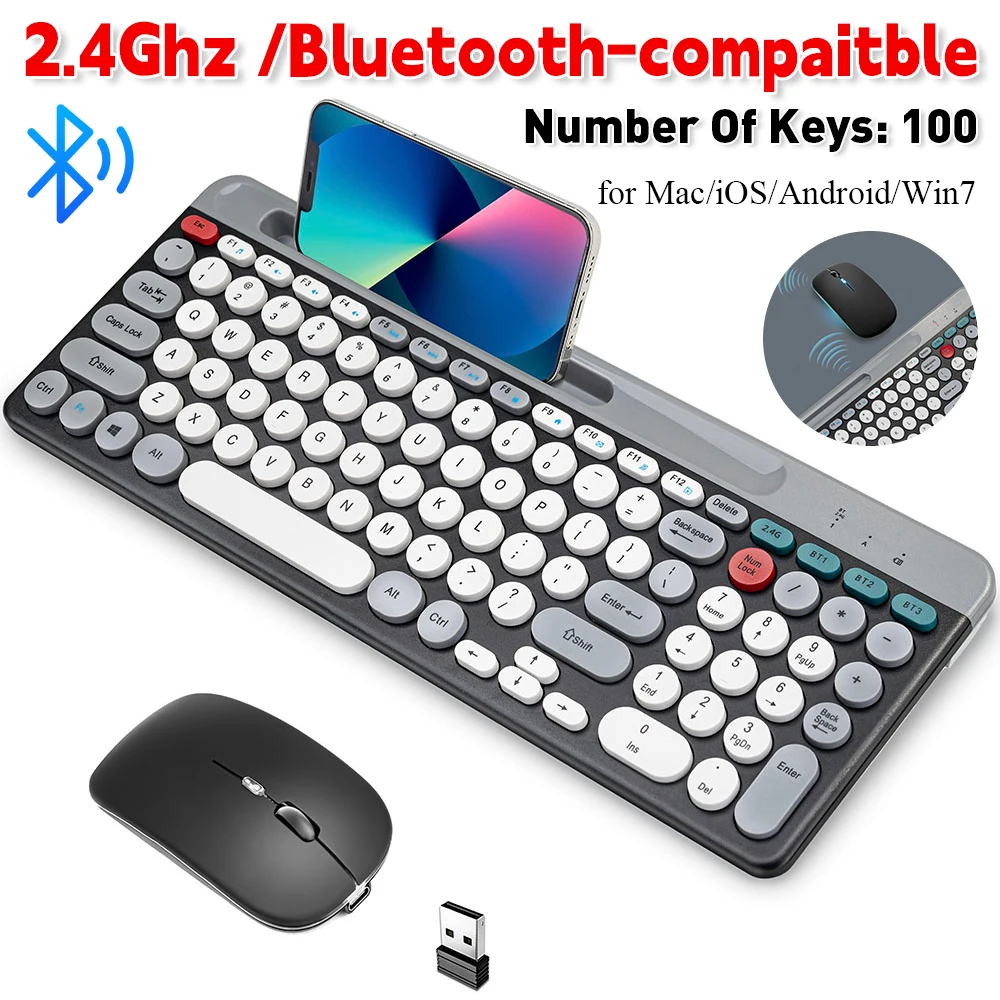 Dual Mode Wireless Connection: This combo supports both Bluetooth and 2.4GHz wireless connections, ensuring compatibility with a variety of devices including computers, tablets, and smartphones. This feature provides flexibility and convenience for users.