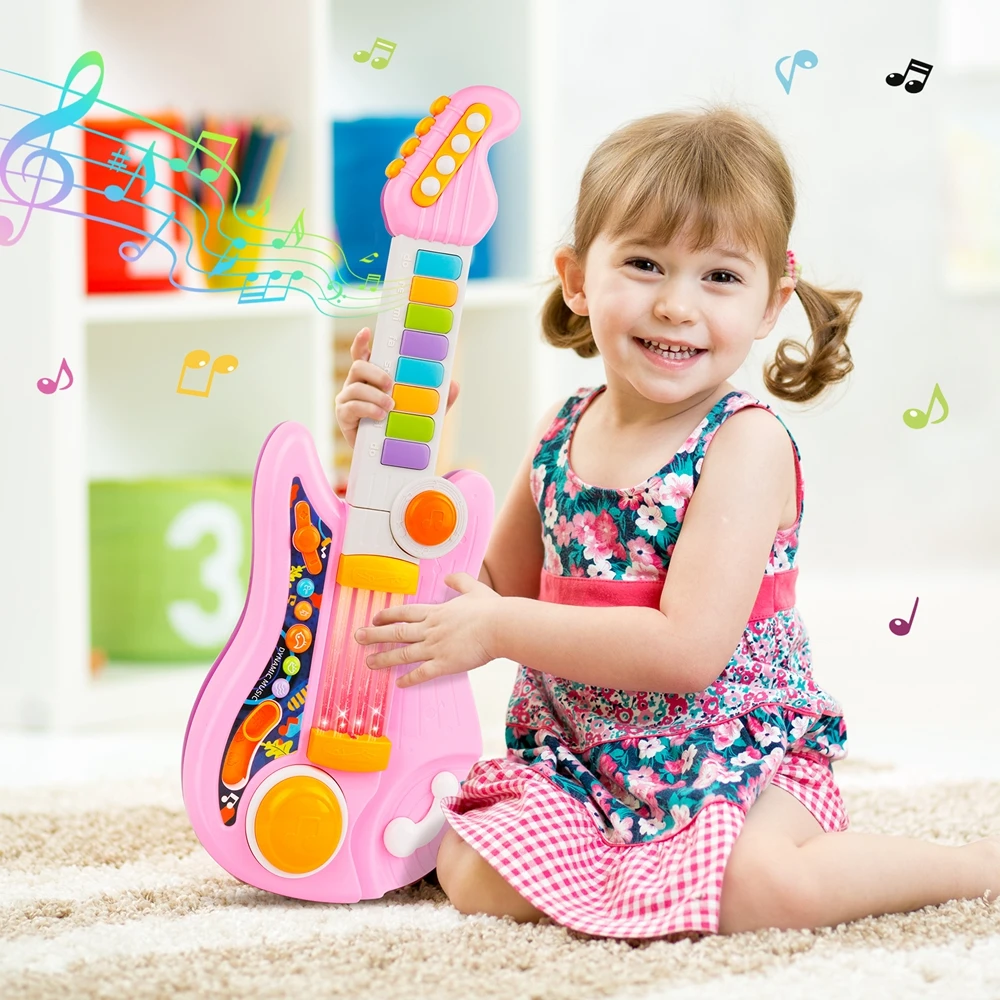 - This light-up guitar toy is educational and promotes brain development.