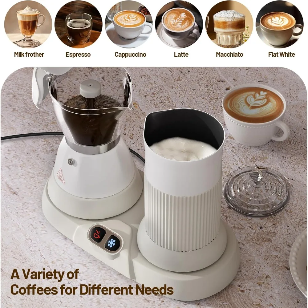 This versatile coffee and milk frothing machine is designed for convenience. With a single button press, you can brew coffee or heat milk, and a quick double-press on the right button creates dense milk froth. The 2-in-1 design supports a range of drinks such as cappuccinos, lattes, and macchiatos.