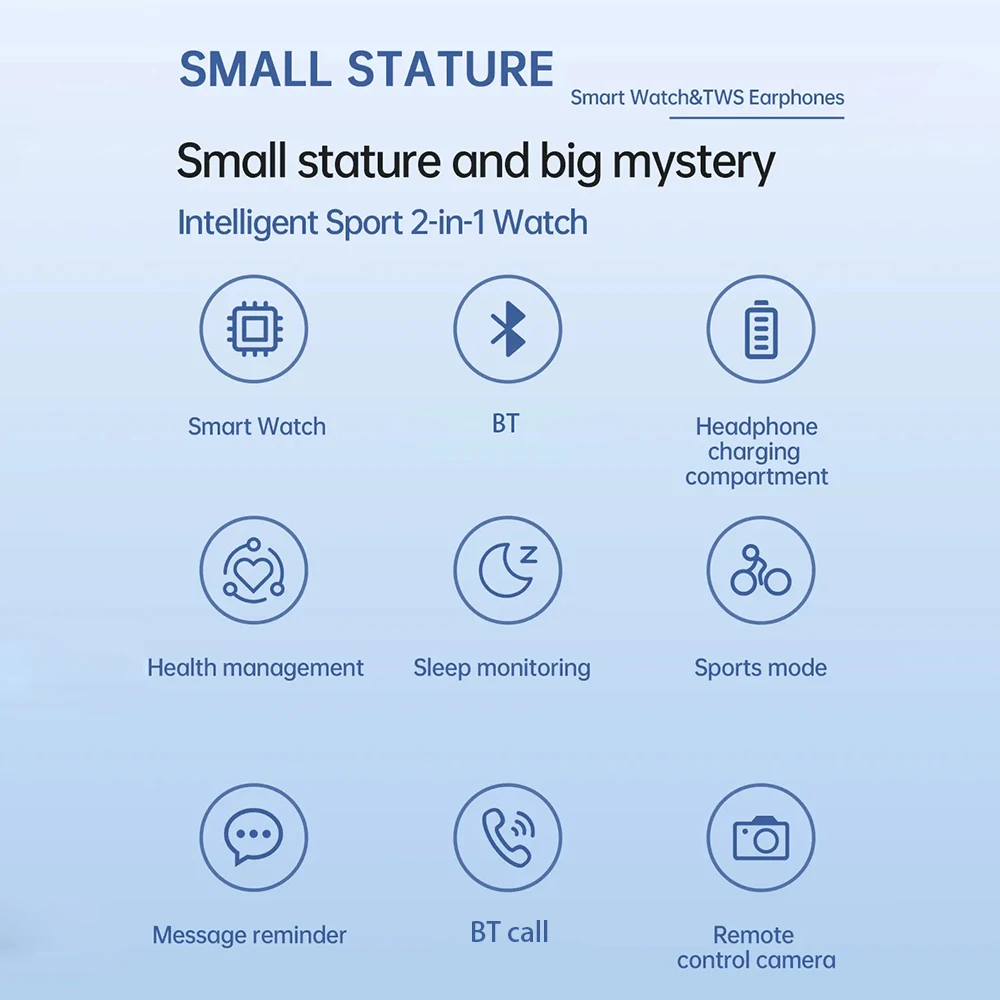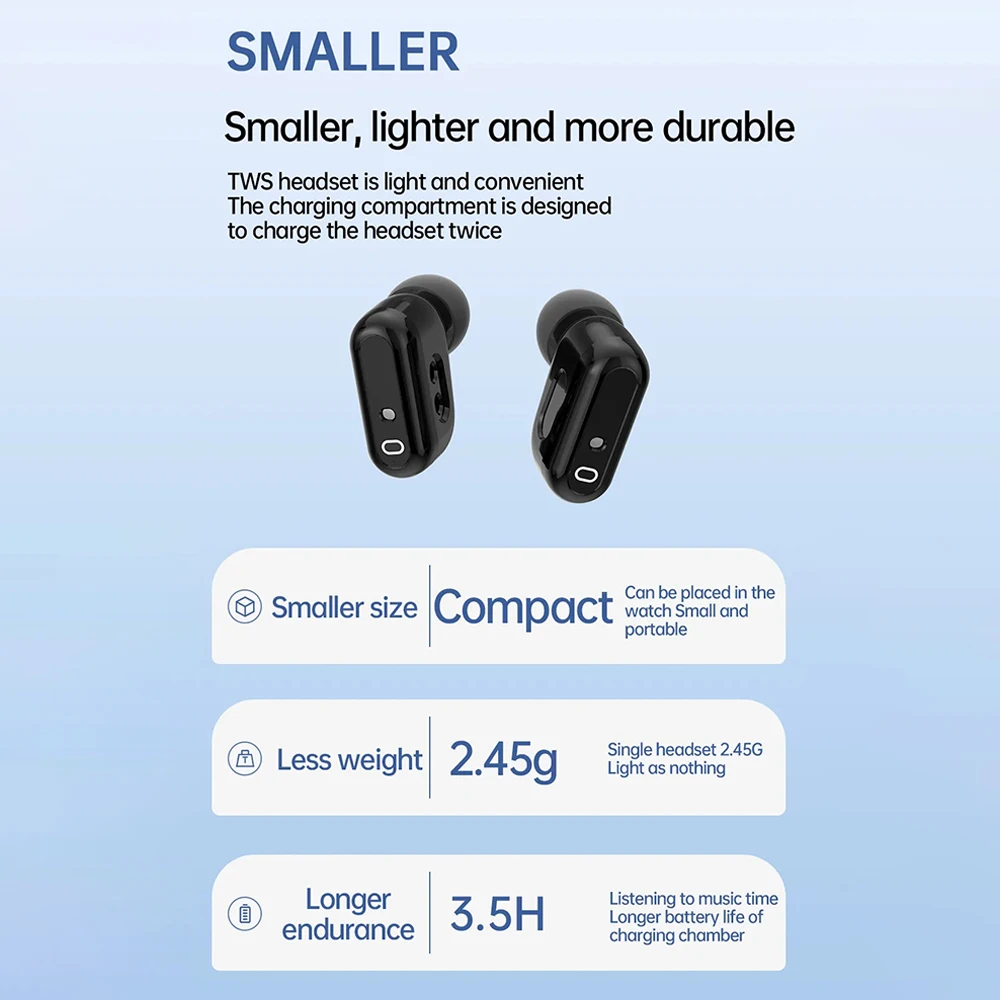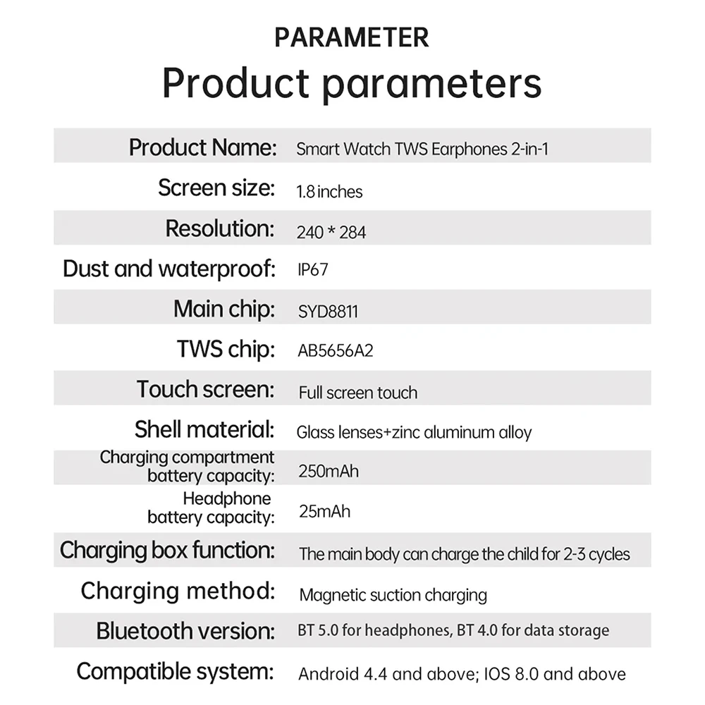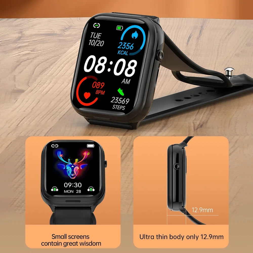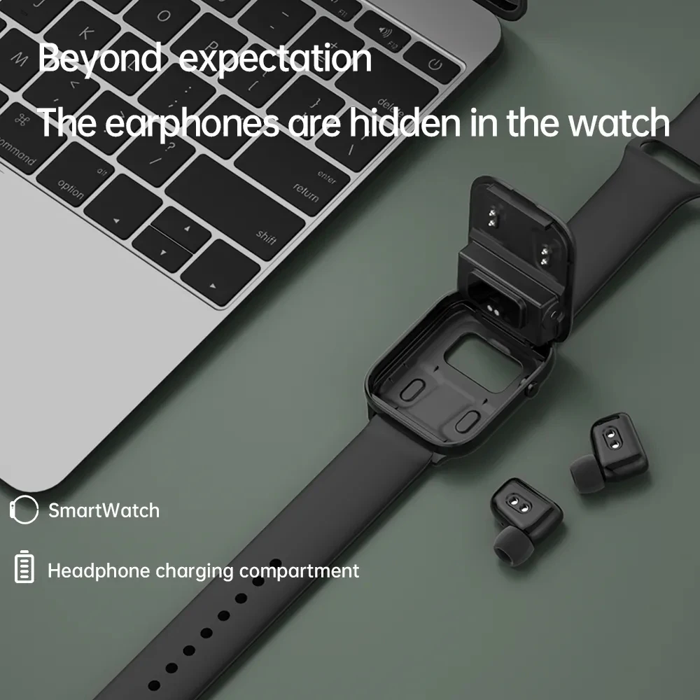 - TWS Bluetooth earphones and smartwatch in one.