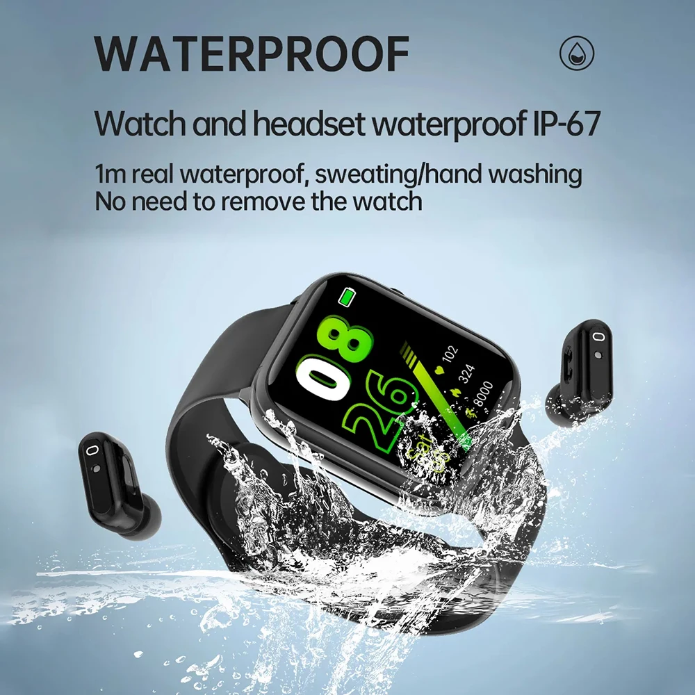 2 in 1 TWS Headset Smartwatch Waterproof Bluetooth