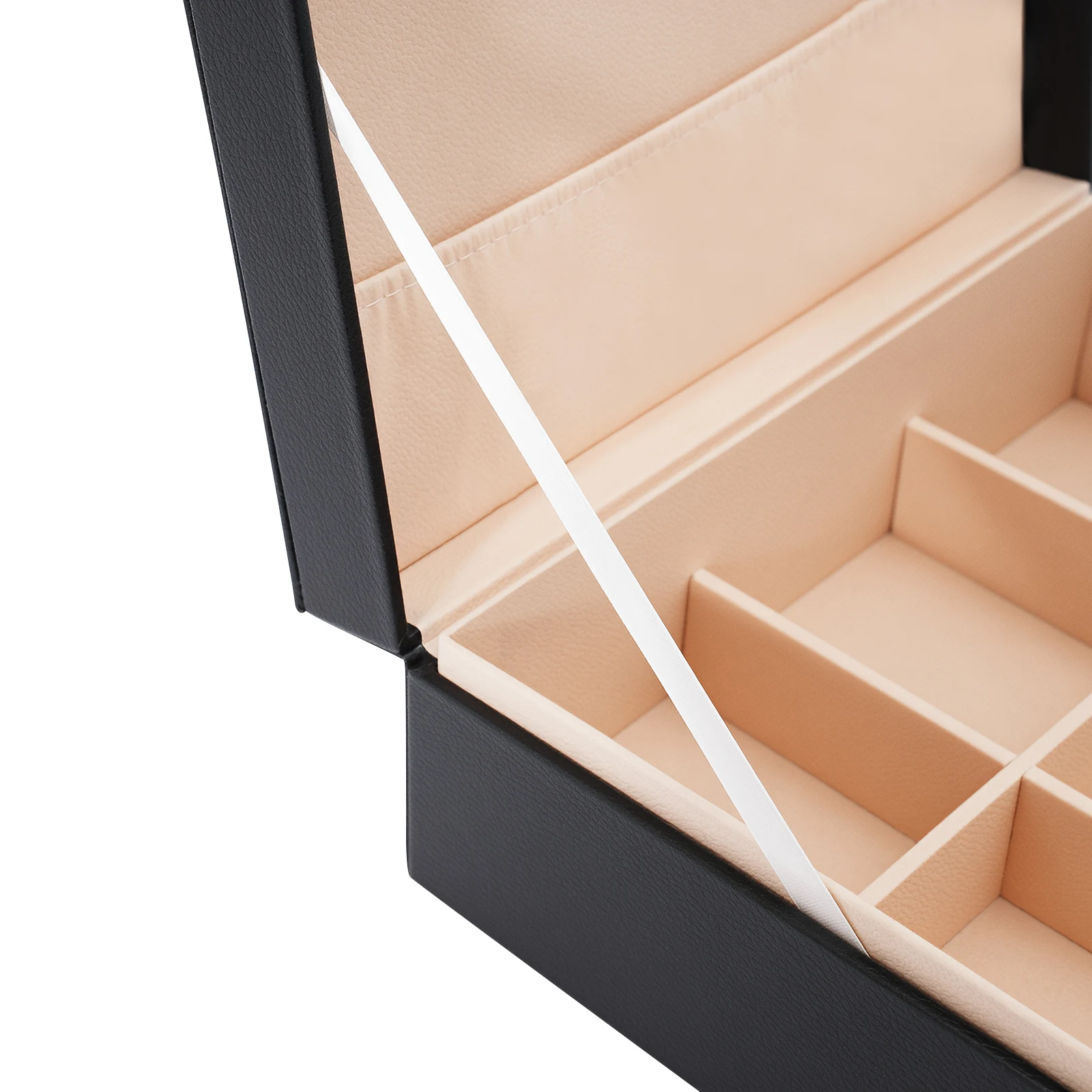 This jewelry box provides a safe, organized place for your pieces, protecting them from damage and keeping them easy to find. Open the lid to see rings, earrings, necklaces, and bracelets laid out neatly so you can choose what you need quickly.