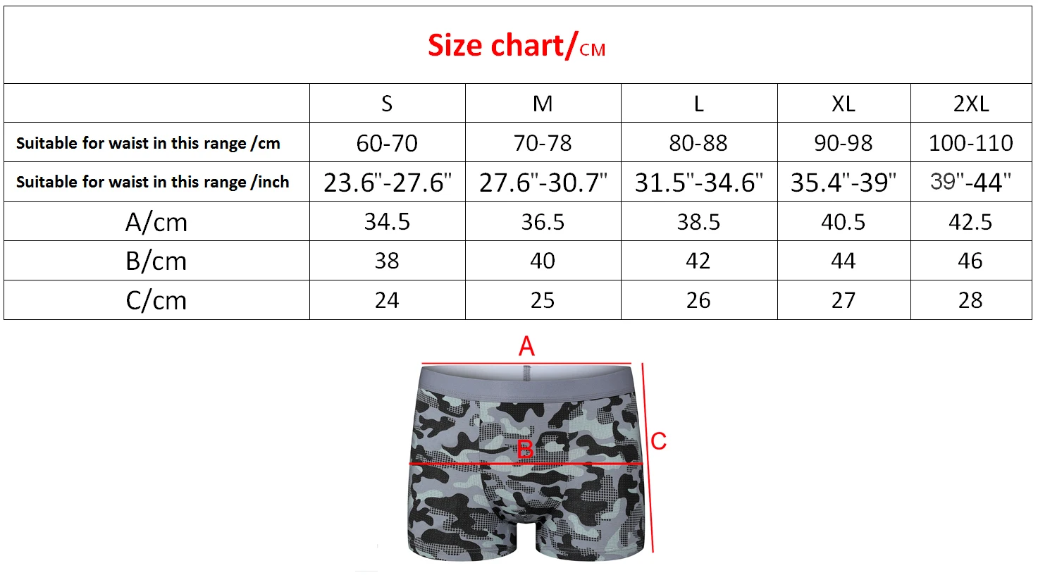 Our Size XXL corresponds to European Size XL and is suitable for a waist size ranging from 43″ to 48″.