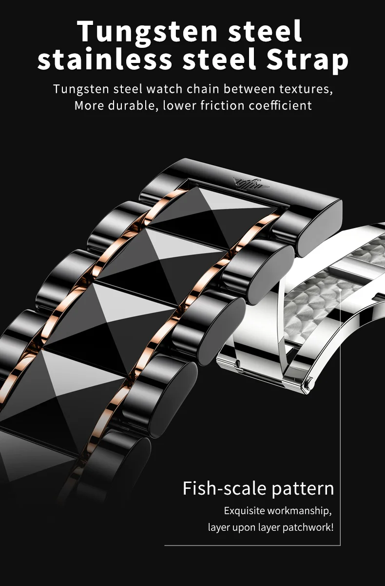 Discover the epitome of elegance and precision with the OUPINKE Automatic Watch for Men. This luxurious timepiece is a masterpiece of craftsmanship, featuring a tungsten steel strap that exudes durability and sophistication. The watch’s skeleton mechanical design offers a glimpse into the intricate workings of its automatic movement, showcasing the beauty of its mechanics.
