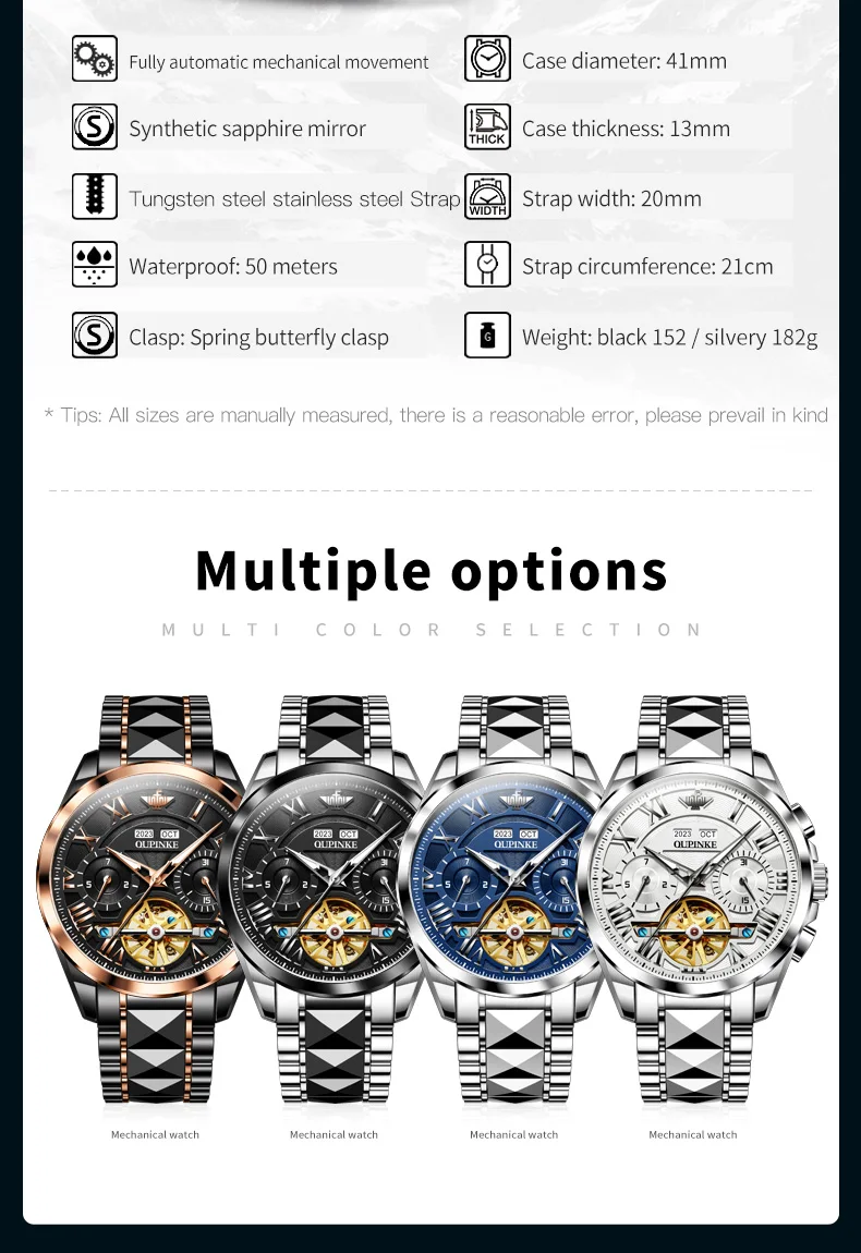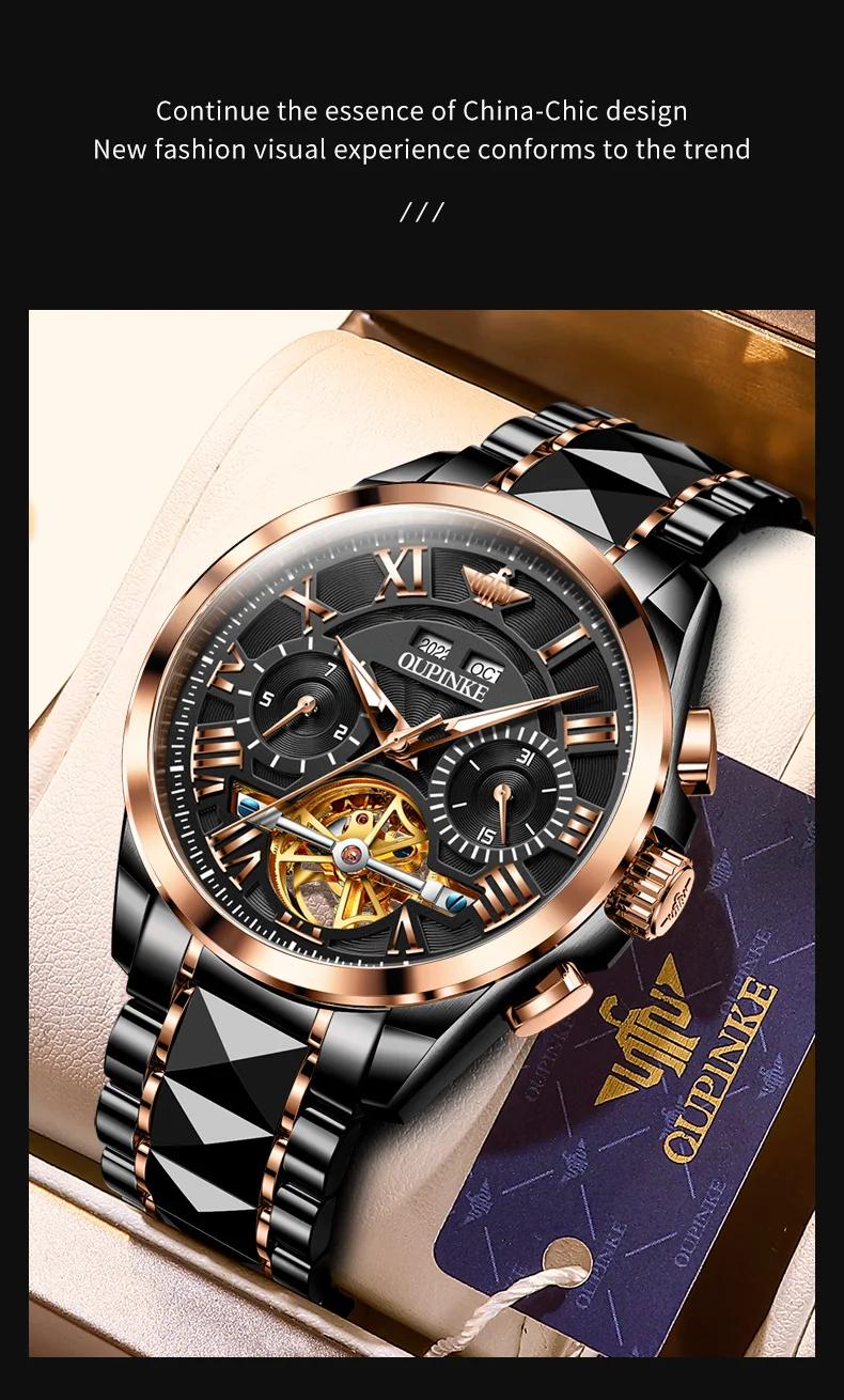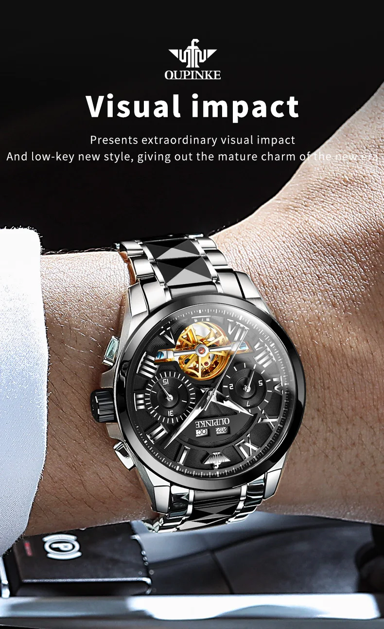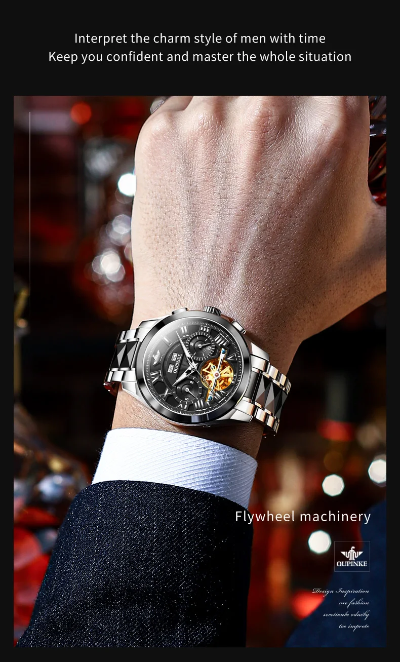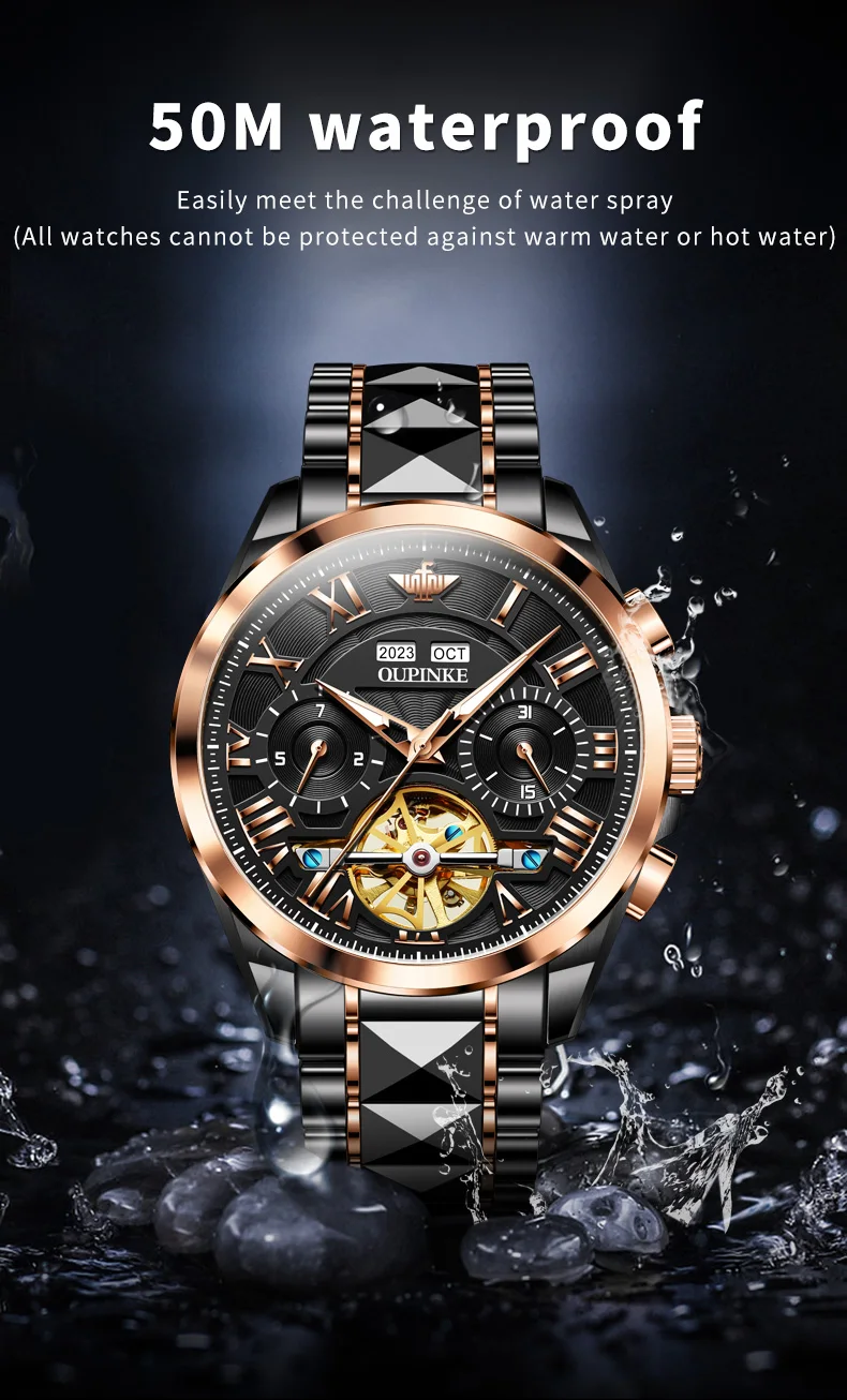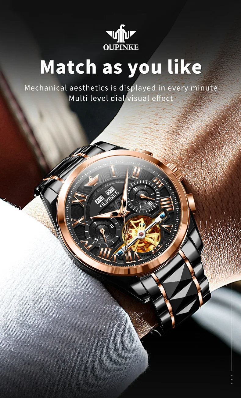 2023 OUPINKE Tungsten Luxury Skeleton Men’s Watch