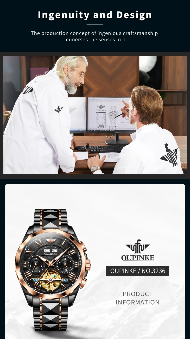 The OUPINKE 3236 model stands out with its water-resistant capabilities, making it a reliable companion for everyday wear or special occasions. Its unique design is highlighted by the luxurious skeleton display, allowing you to witness the precision of its mechanical movement. This watch is a testament to OUPINKE’s commitment to quality, offering an original brand experience that combines luxury with the reliability of waterproof functionality.