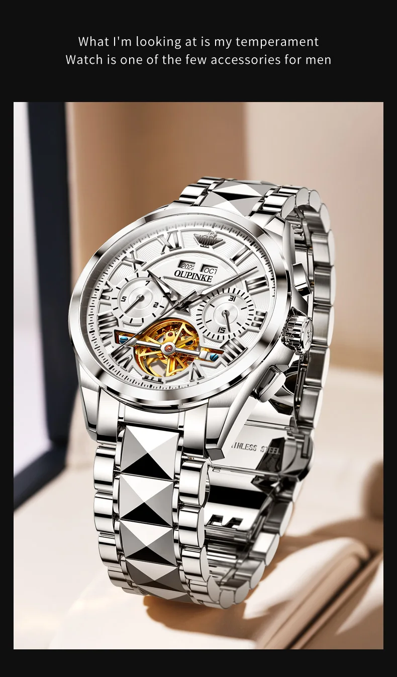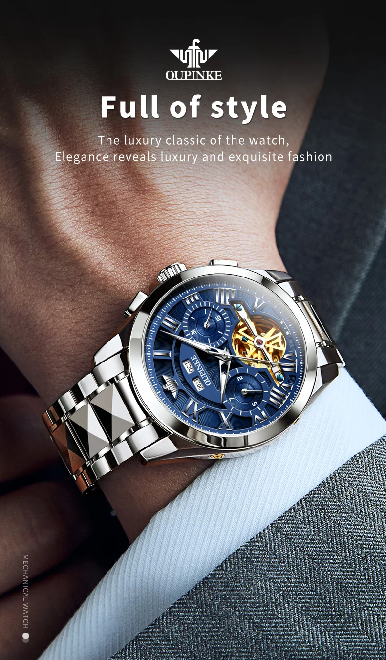 Whether you’re dressing for a business meeting or a casual outing, the OUPINKE Automatic Watch for Men adds a touch of luxury to your ensemble. Its timeless design and superior craftsmanship make it a valuable addition to any watch collection, promising to elevate your style with its distinguished presence.