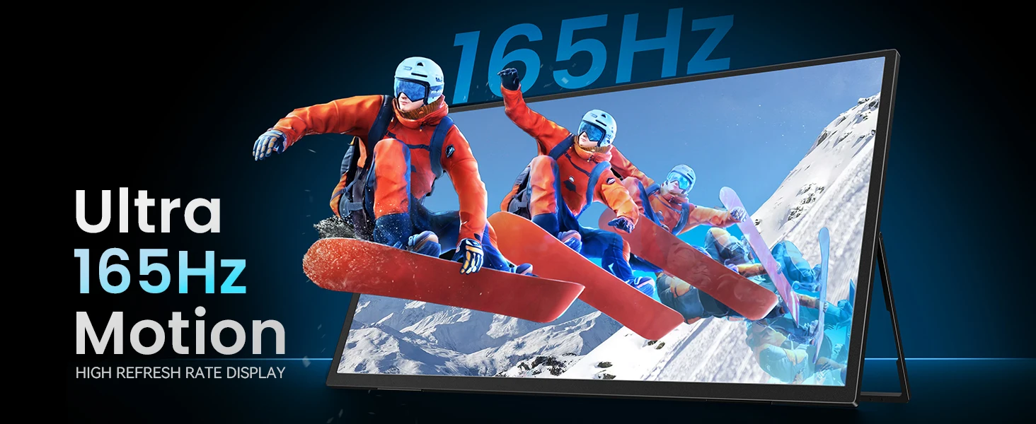 Up to 165Hz for smoother motion. This monitor is listed with up to 165Hz refresh rate support for cleaner movement during fast camera pans, quick tracking, and scrolling. For best results, Type C is listed up to 165Hz while Mini HDMI is listed up to 144Hz, depending on the device and settings.