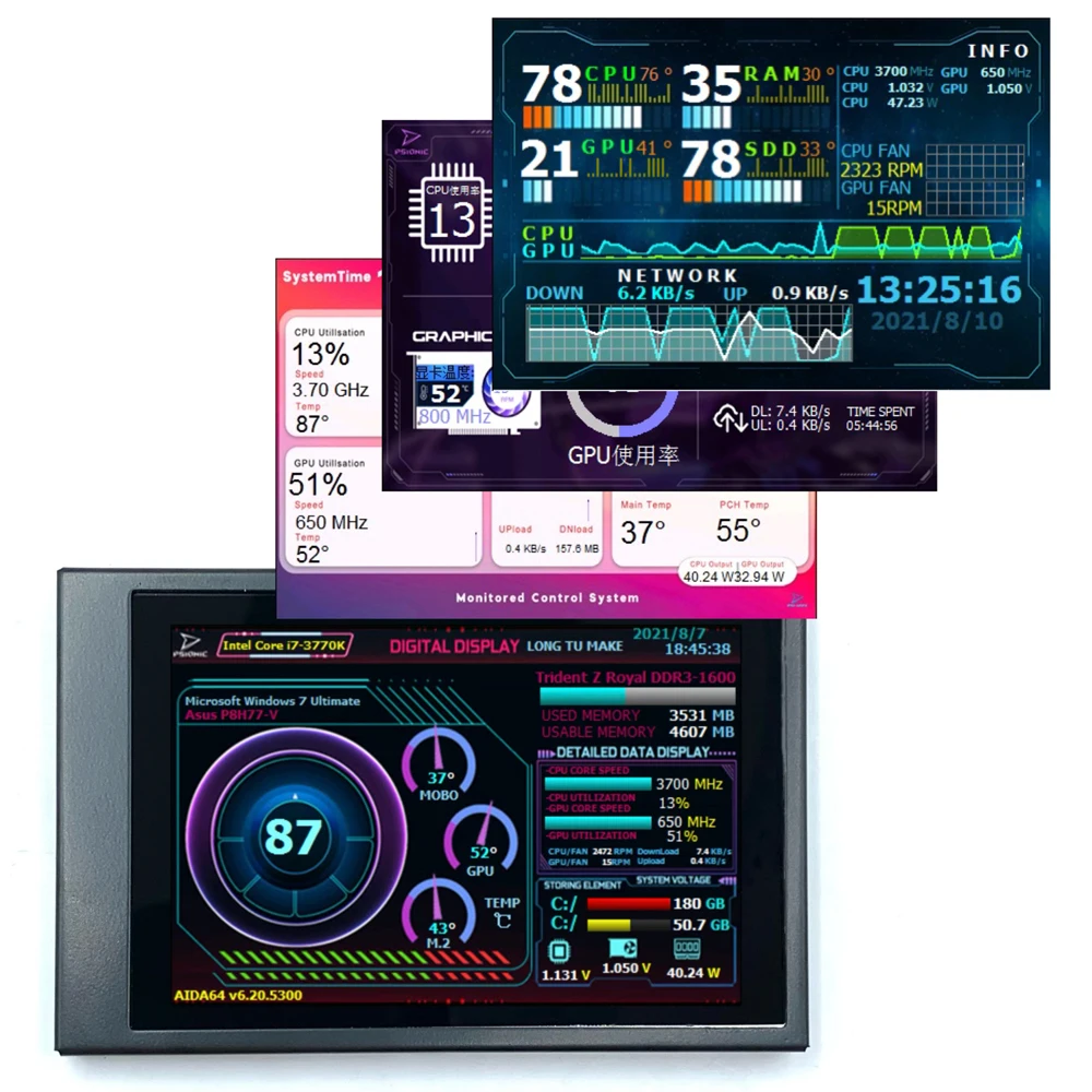 This 3.5-inch display with multiple themes is easy to use, requiring no additional power supply or multimedia interface. A USB data cable is needed for operation. It supports horizontal and vertical screen switching, 360-degree rotation, and compatibility with multiple systems. If you’re looking for this product, give it a try—it won’t disappoint.