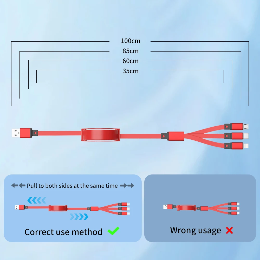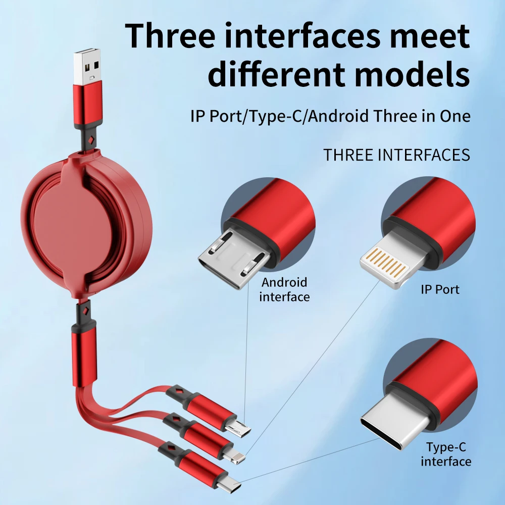 - 3-in-1 retractable USB charging cable
