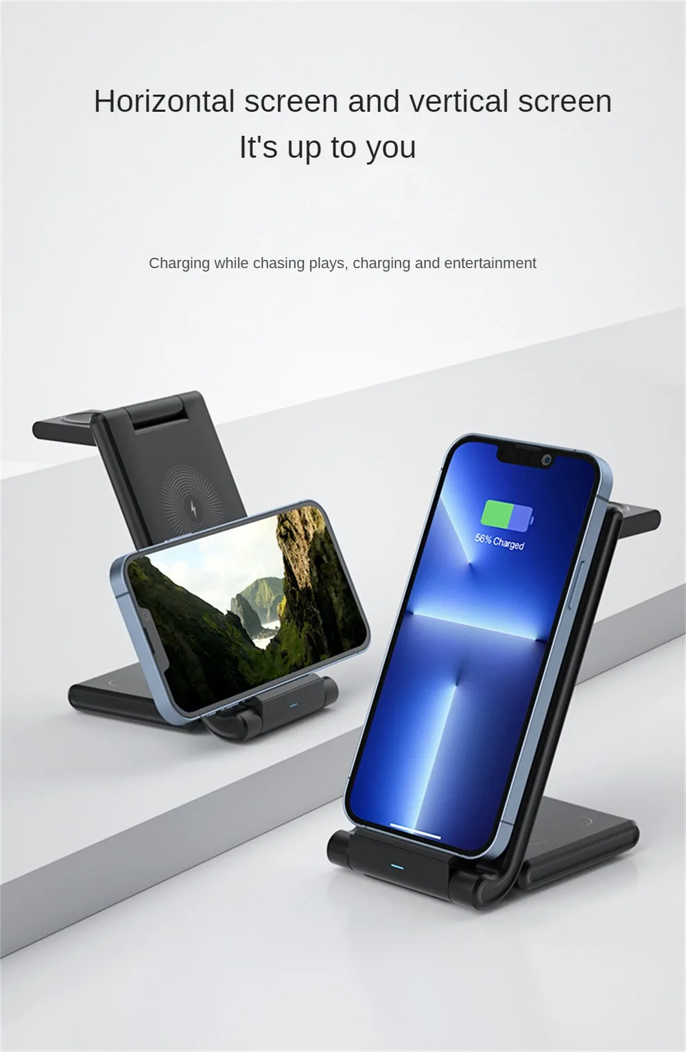Product Description for the New Vertical Foldable Three-in-One Wireless Charger