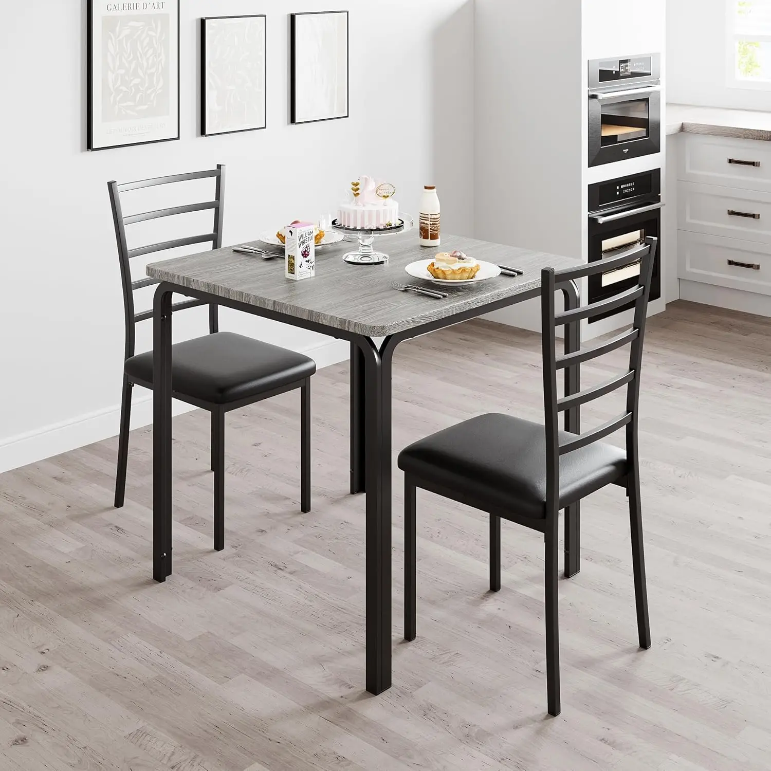 - Sturdy and durable set: This 3-piece dining set features a strong metal frame and a scratch-resistant MDF tabletop. Each chair supports up to about 300 lb and includes reinforced metal tubes and an ergonomic curved backrest for everyday comfort and stability.