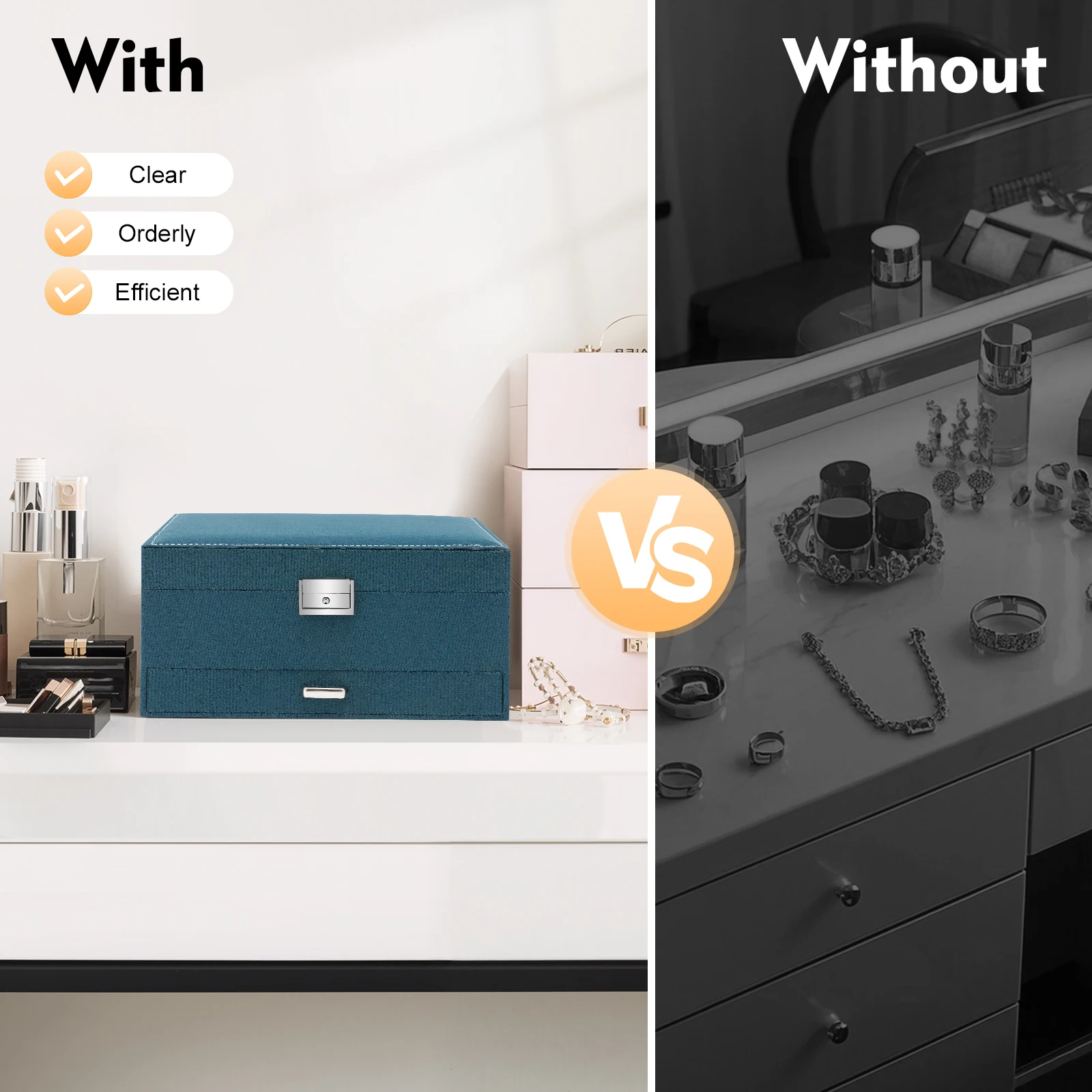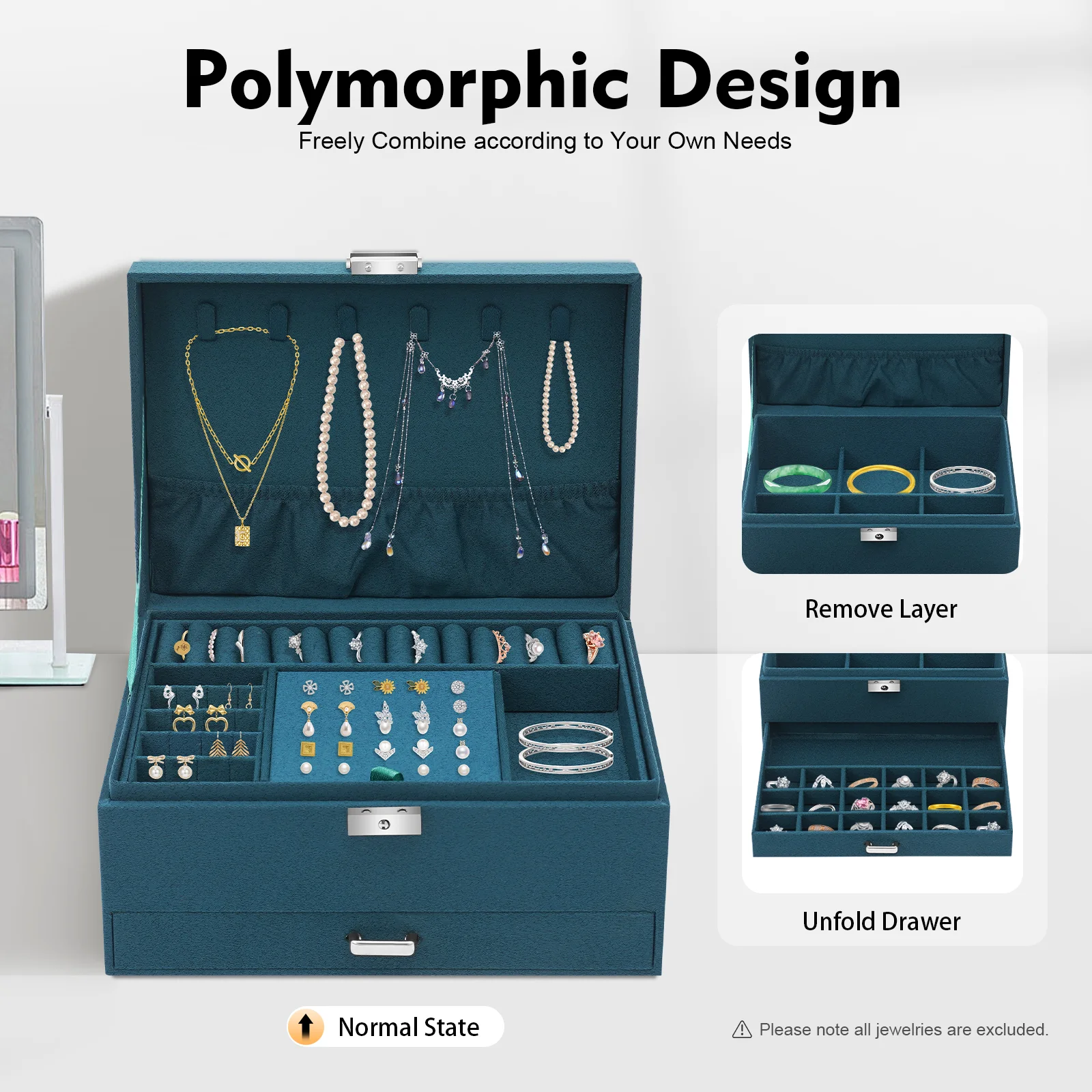 - User-Centric Design: Stackable compartments let you create layouts for necklaces, earrings, rings, and more, so everything stays neatly organized.