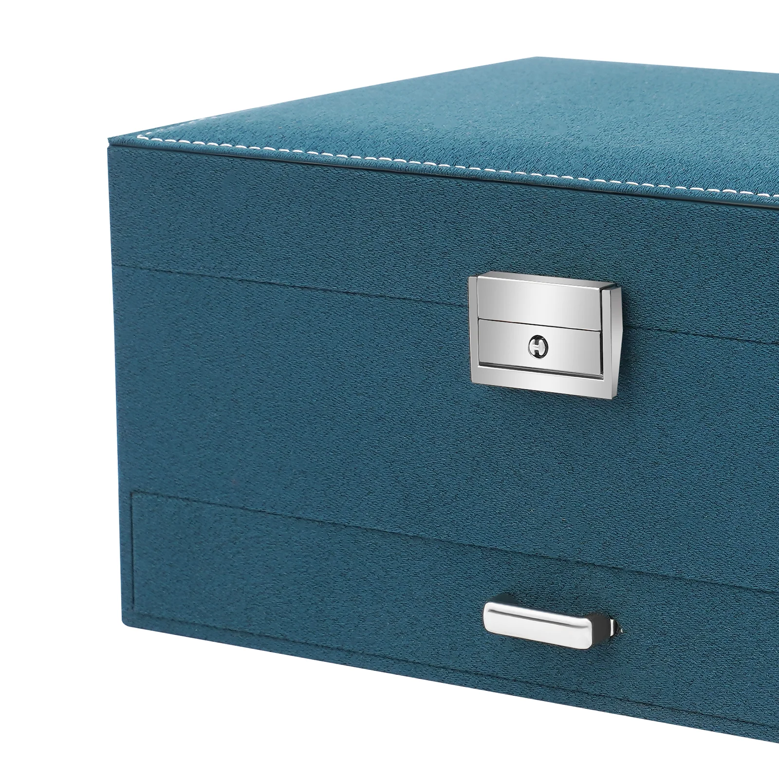 3-Tier Dark Green Suede Metal Jewelry Box Drawers