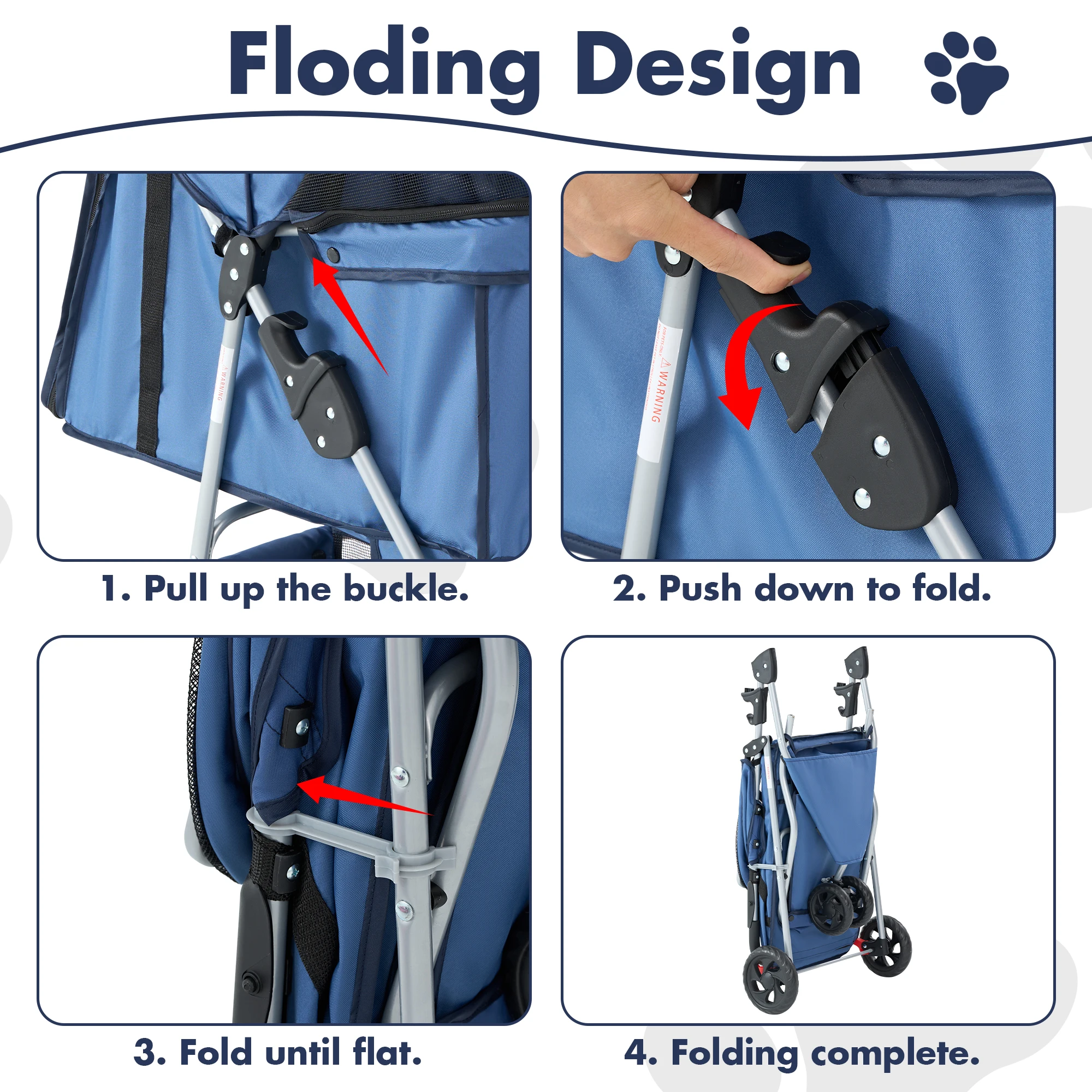 Extra Storage and Practical Design: A large undercarriage basket and cup holders provide space for pet supplies, snacks, toys, and personal items. The waterproof fabric and easy-to-clean materials make maintenance simpler.