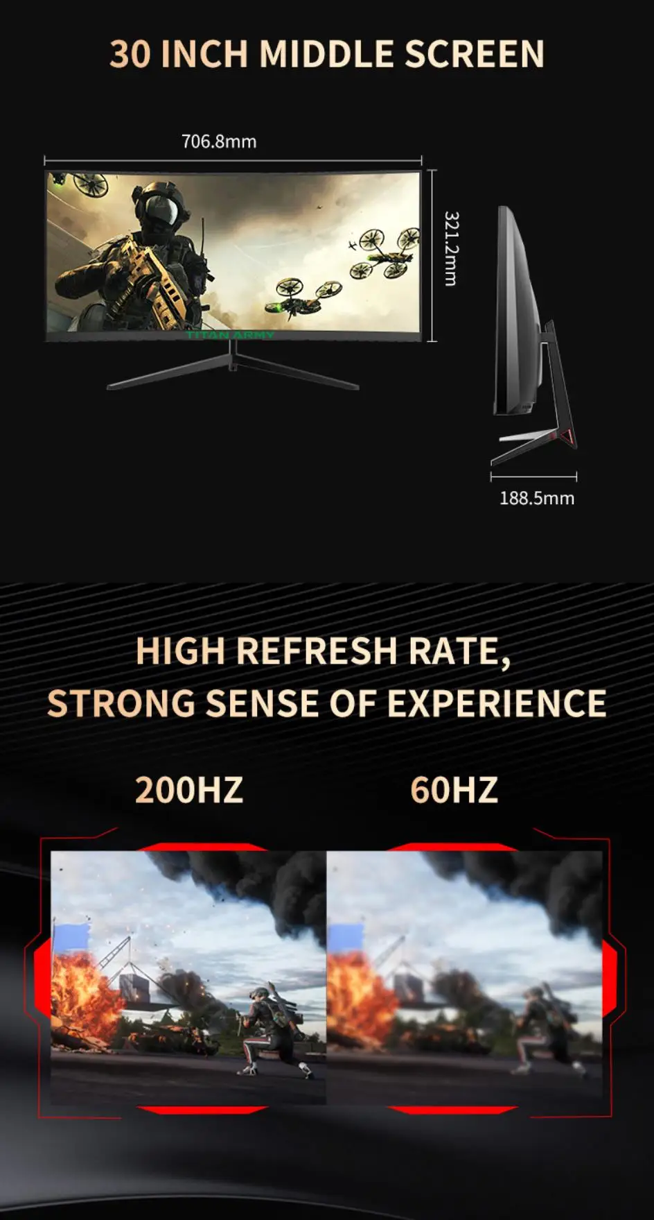 30-Inch 2K 200Hz Curved Gaming Monitor Ultra Wide