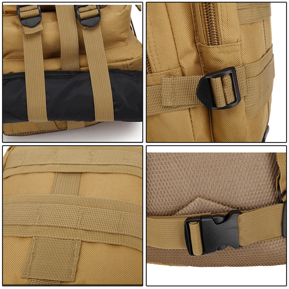 - Enhanced Organization and Stability: The side fastening buckles in our Oxford tactical backpack offer versatile adjustability, providing secure packing and improved stability for your belongings. Additionally, the bottom compression straps allow you to securely attach additional outdoor gear, such as tents or trekking poles.