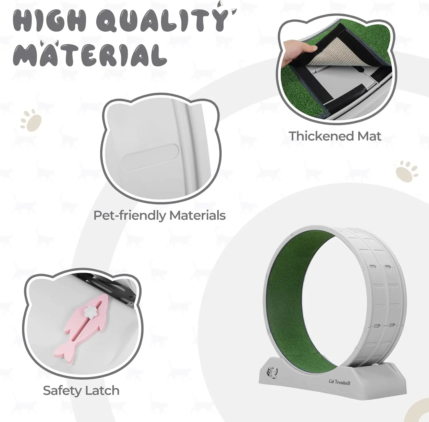 Easy to Assemble and Clean: This cat treadmill is easy to assemble with a snap-on design and a clear user manual. Note: The detachable carpet is not recommended for machine washing.
