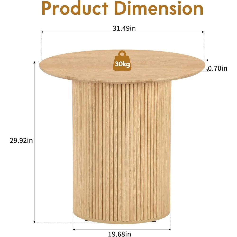 31.5-Inch Round Farmhouse Table Fluted Wood Base