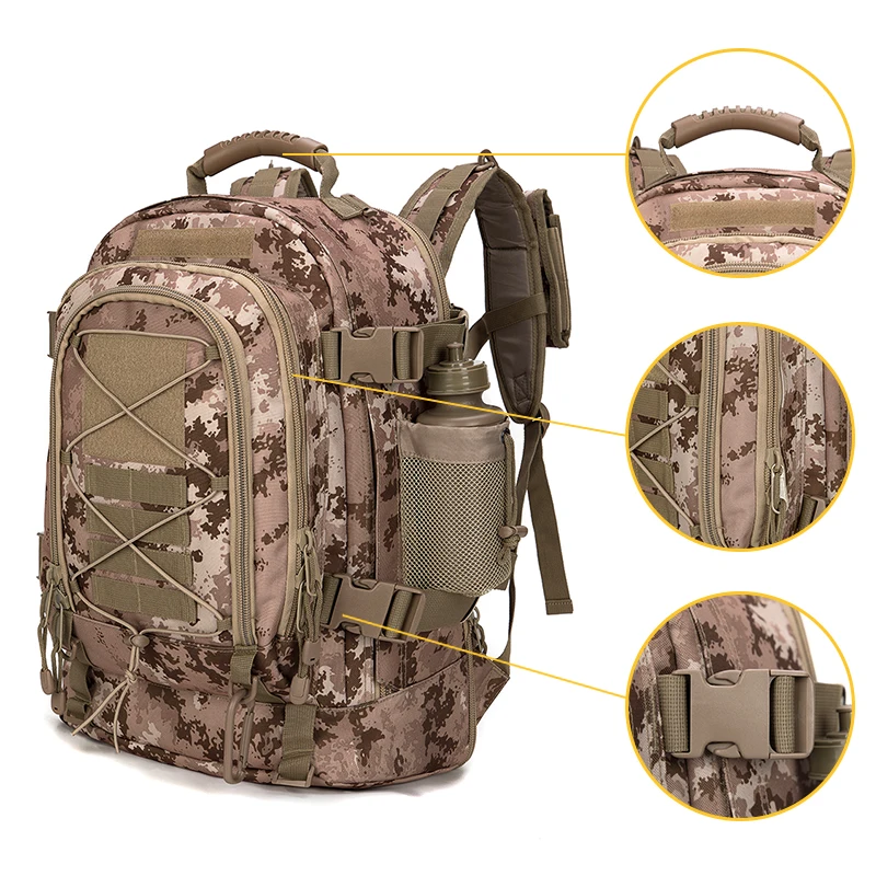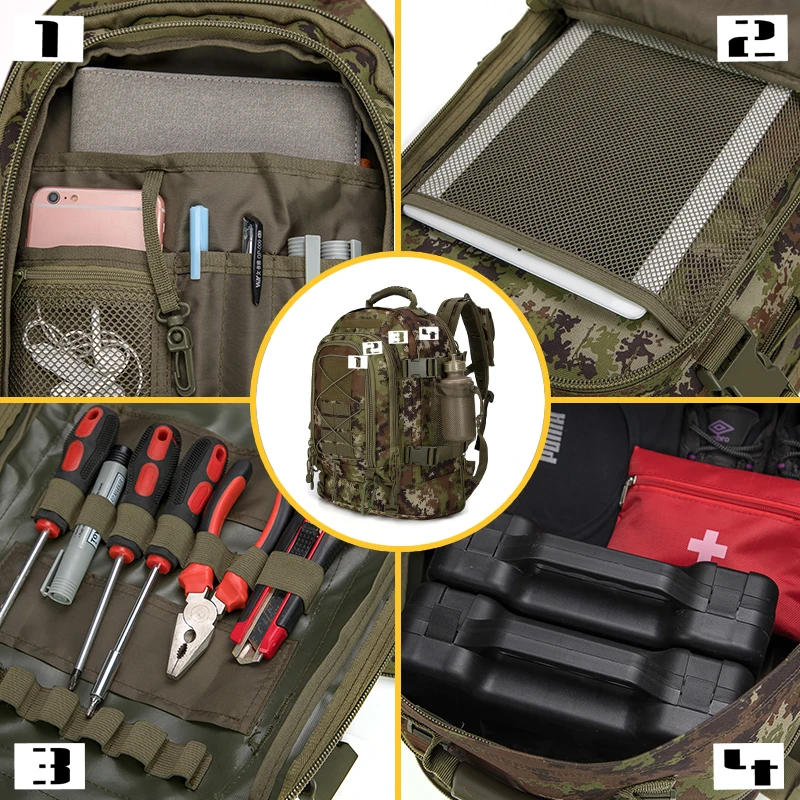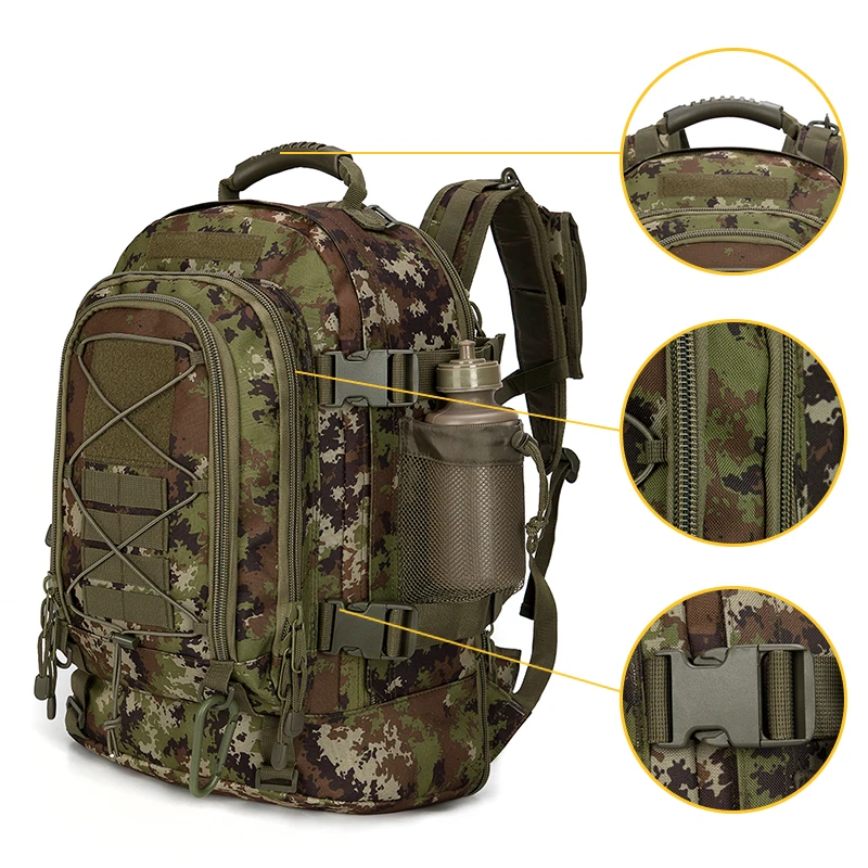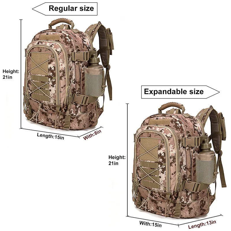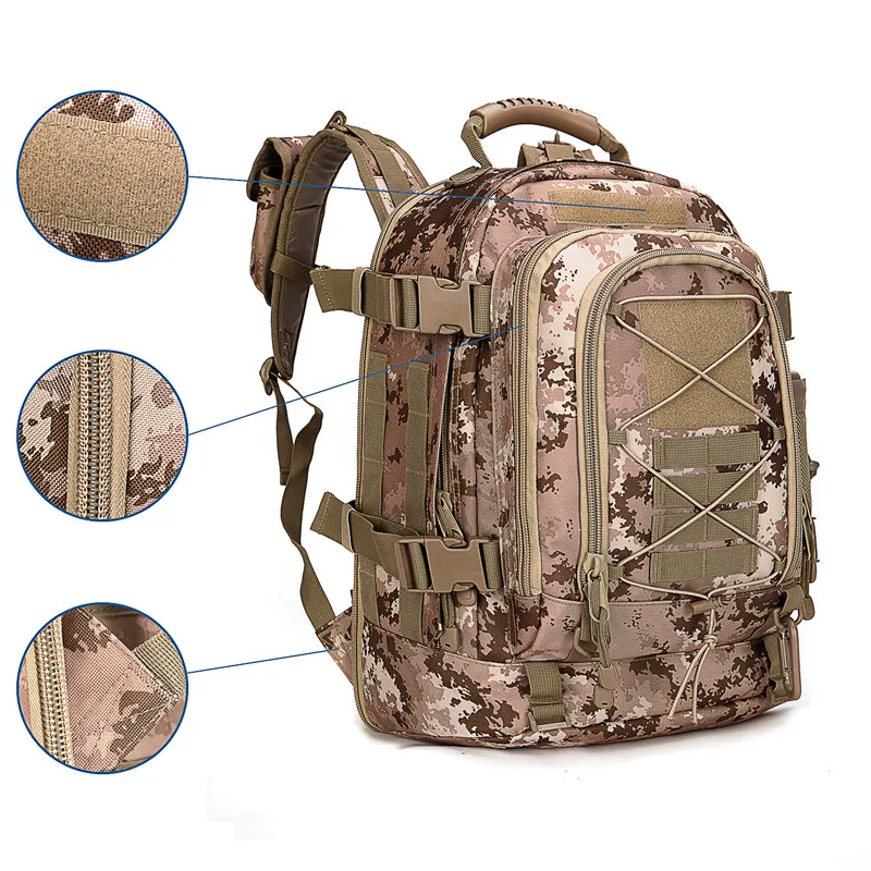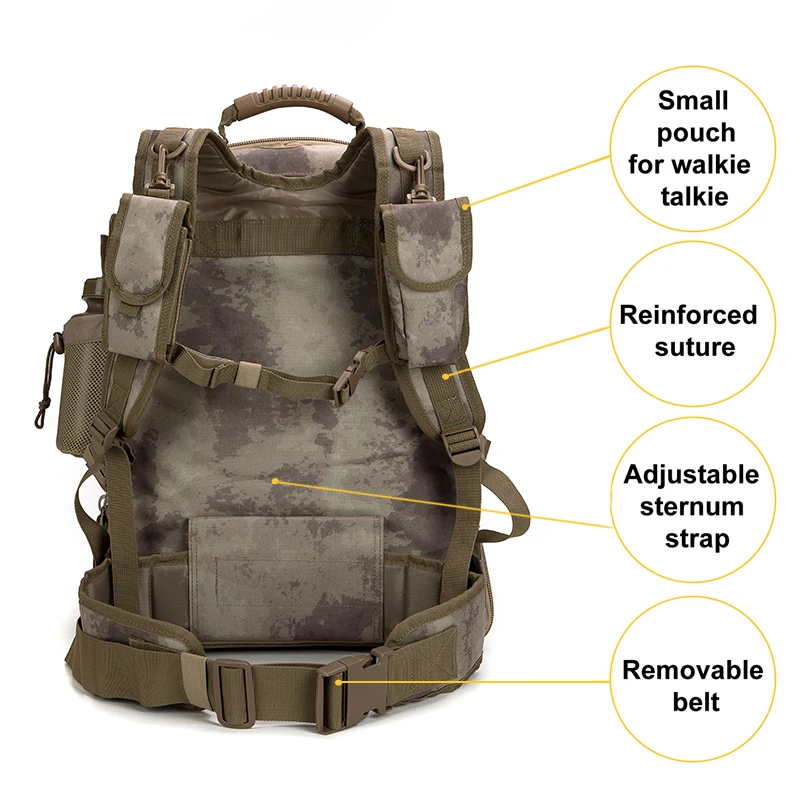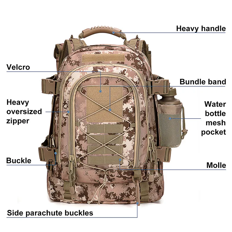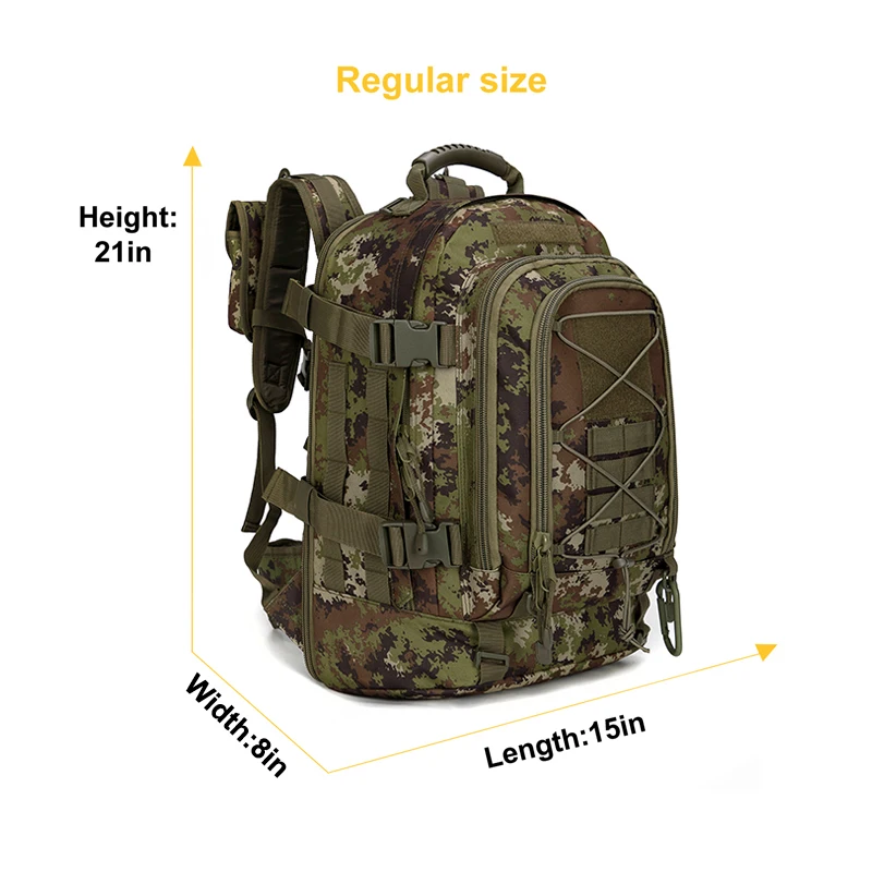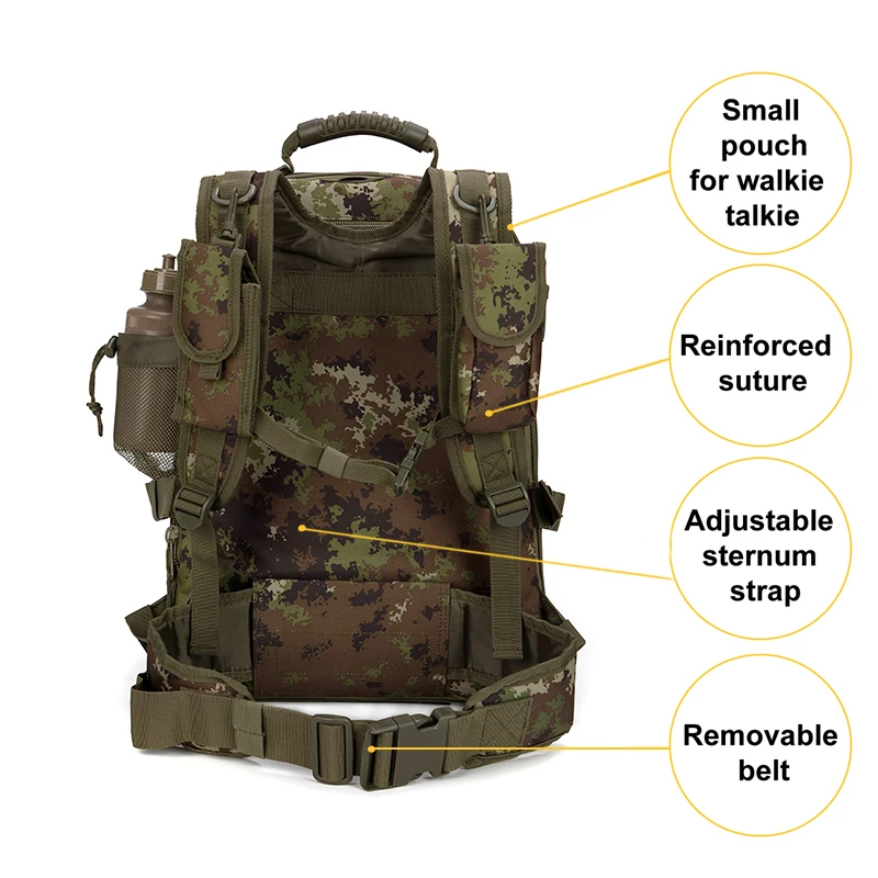 natural environments during hunting or military exercises but also adds a rugged aesthetic that appeals to outdoor enthusiasts of all kinds. Whether you’re fishing, climbing, or embarking on a camping trip, this backpack is your reliable partner.