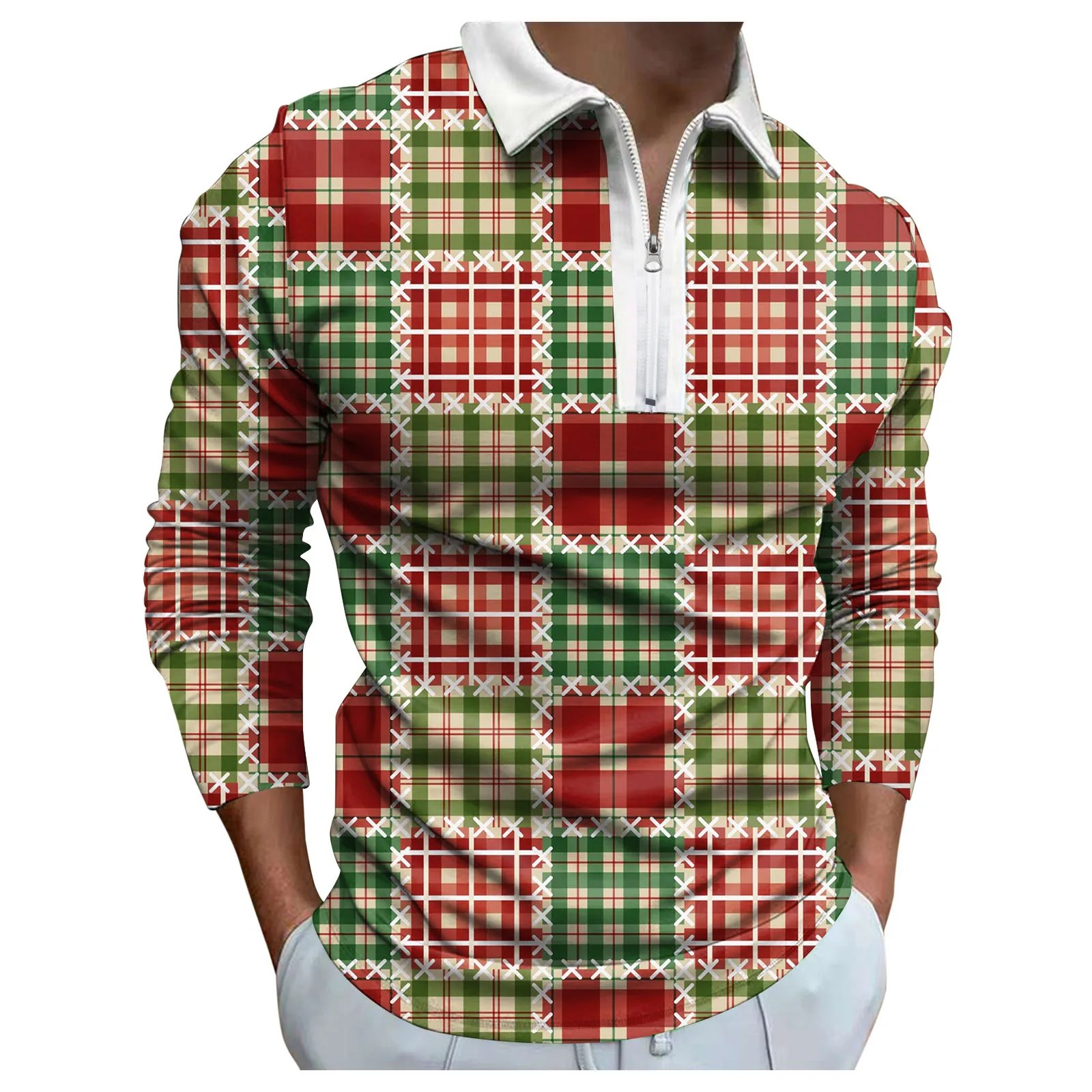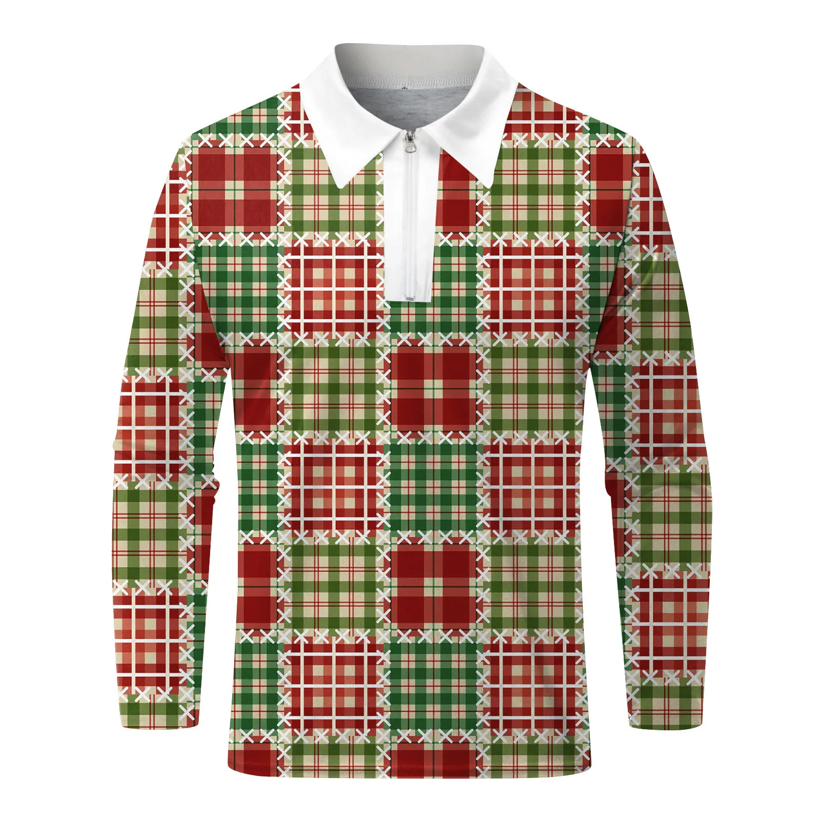 3D Christmas Plaid Long Sleeve Shirt