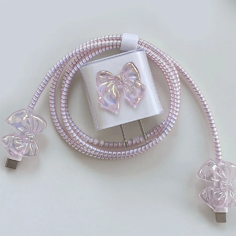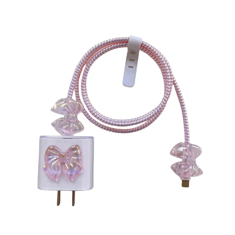 Add a cute and protective touch to your charging setup with this 3D pink bow cable charger protector cover set. Designed for compatible iPhone and iPad charging accessories, this decorative set helps protect your charger cable connection point from bending, fraying, and everyday wear while also keeping your cable looking stylish and easy to identify.