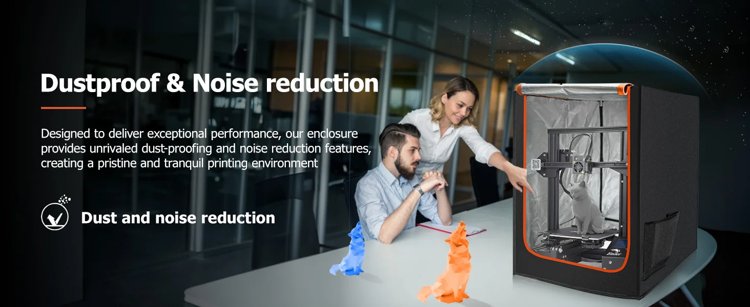 - Unrivaled Dustproof & Noise Reduction Features: Create a pristine and tranquil printing environment. Our enclosure effectively safeguards your 3D printer from dust and debris, extending its lifespan, while significantly reducing operational noise, allowing you to work or relax without distraction.