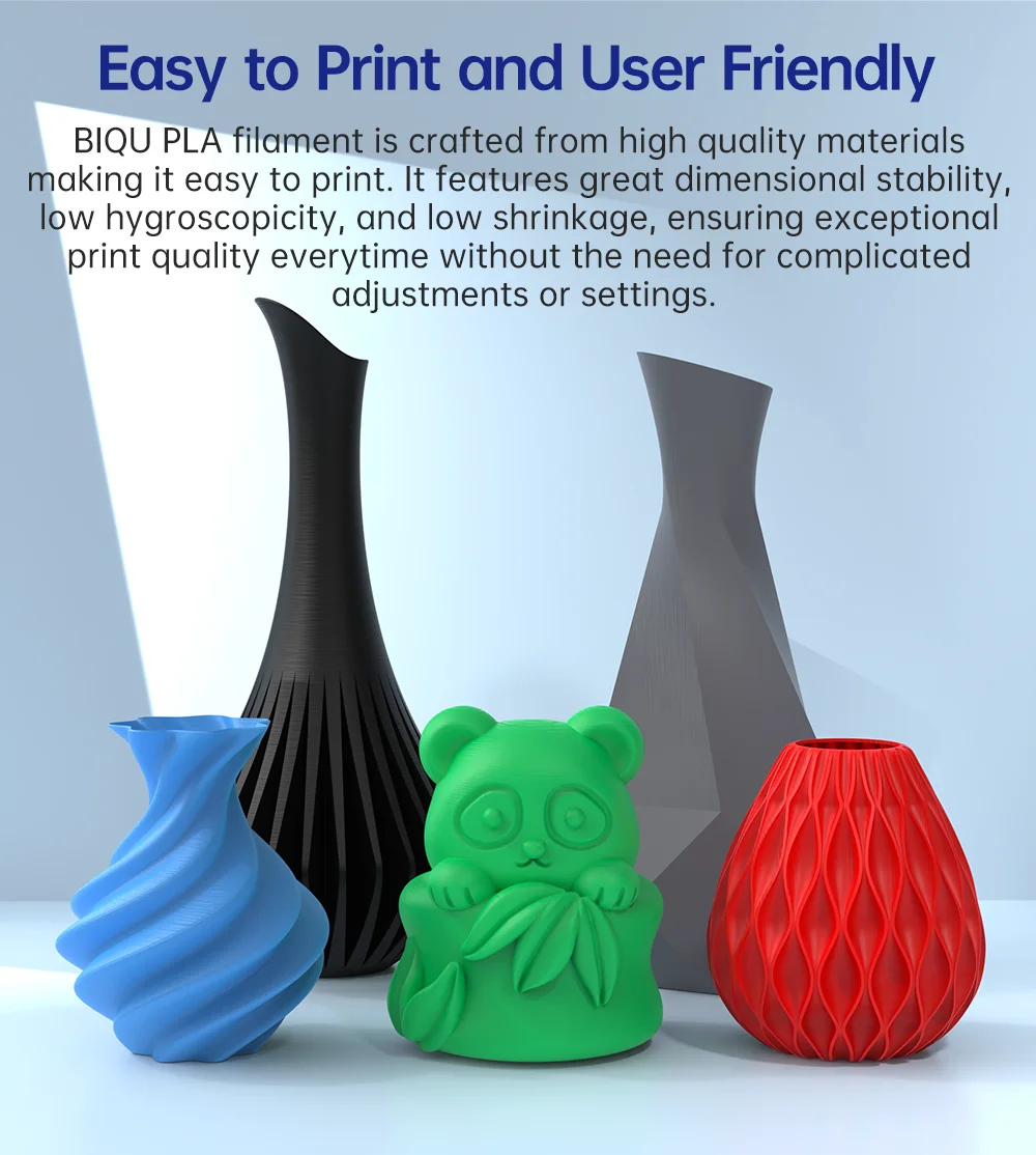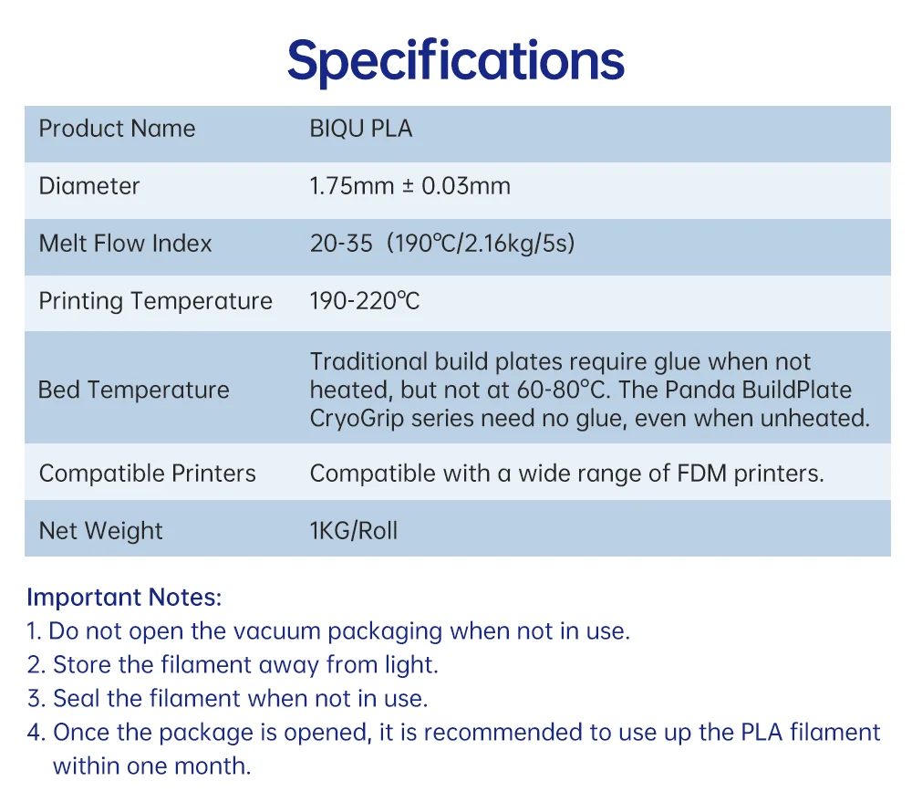 - Excellent fluidity, no wrapping issues for printing large area objects, anti-bending.
