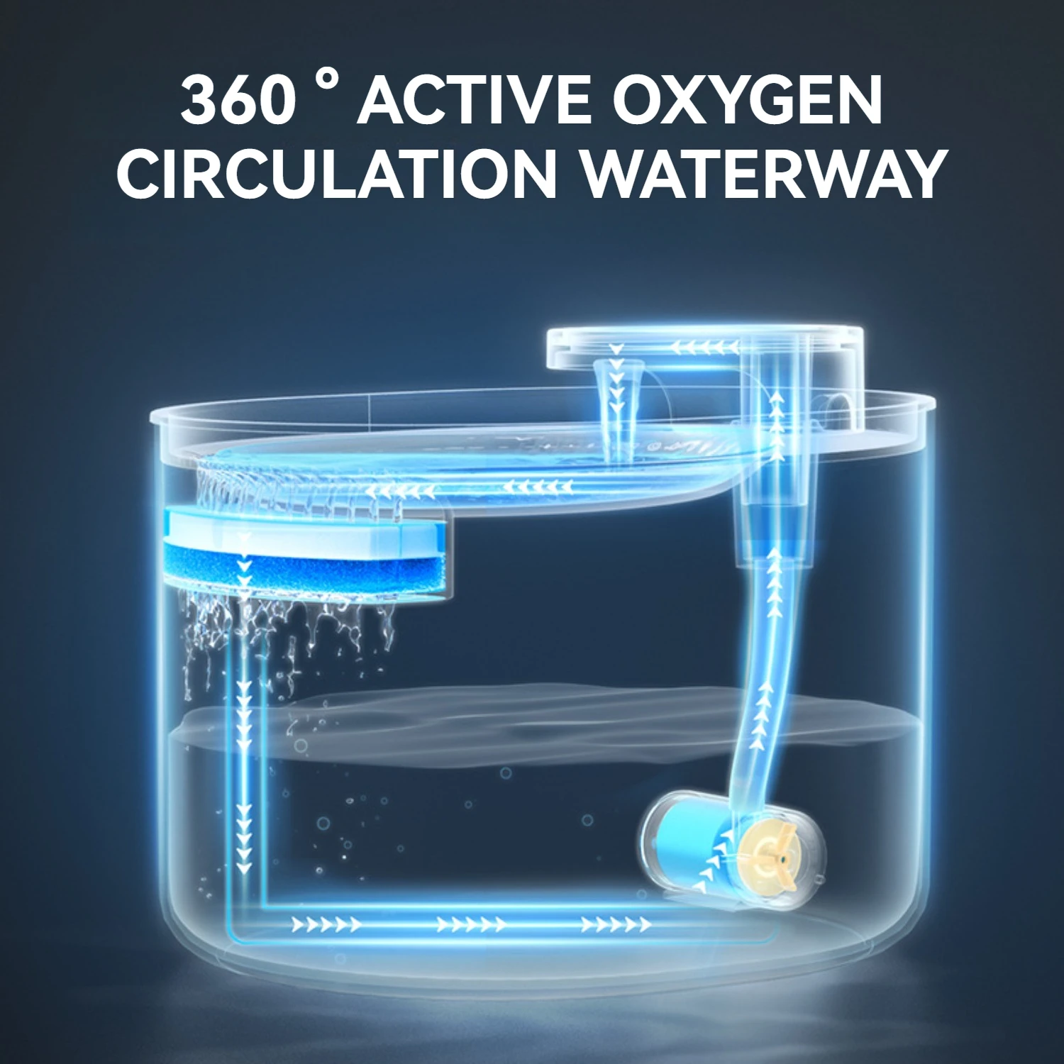 Ultra-Quiet Operation: This fountain offers fast water flow with minimal noise, maintaining a sleep-level quiet of around 30dB. The gentle flowing water sound creates a peaceful environment, perfect for bedrooms or rest areas without disruptive noise.