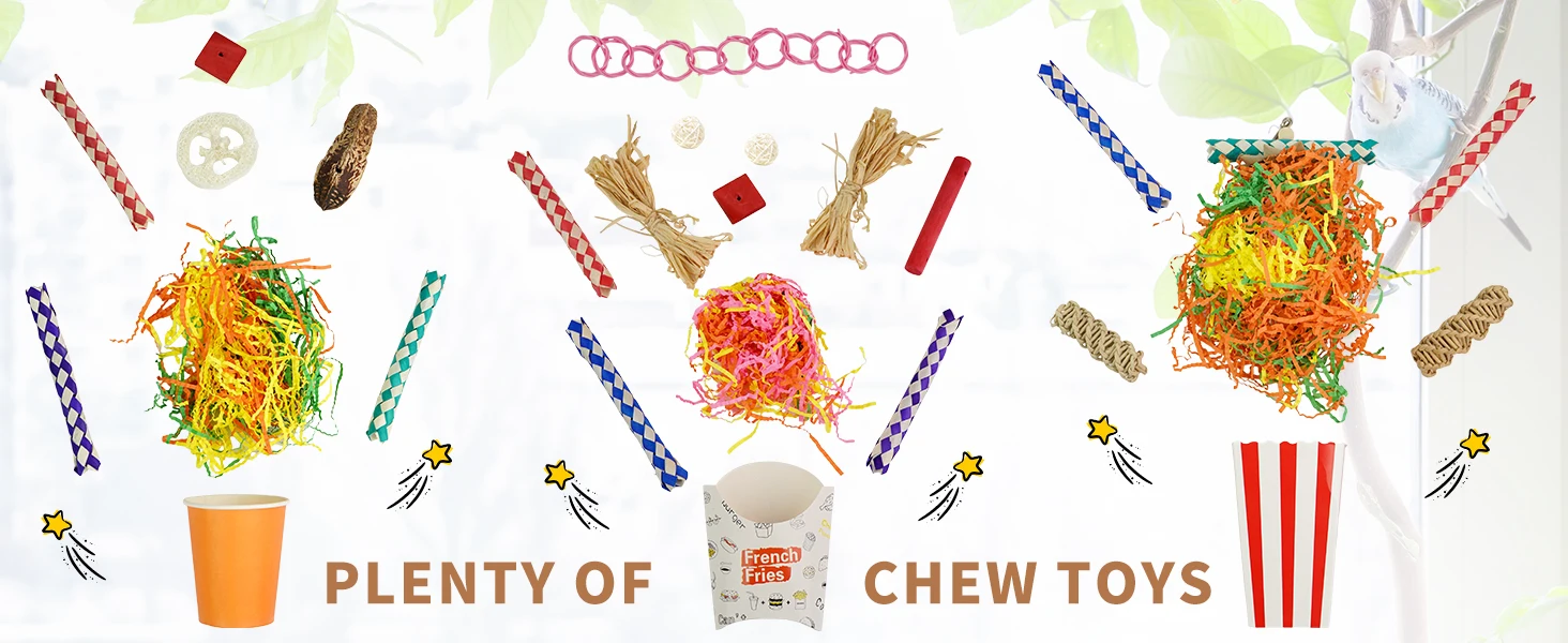 Reduces Boredom: These toys easily attract parrots to chew and play for long periods, keeping them engaged and helping to prevent boredom, depression, aggression, and destructive behavior.