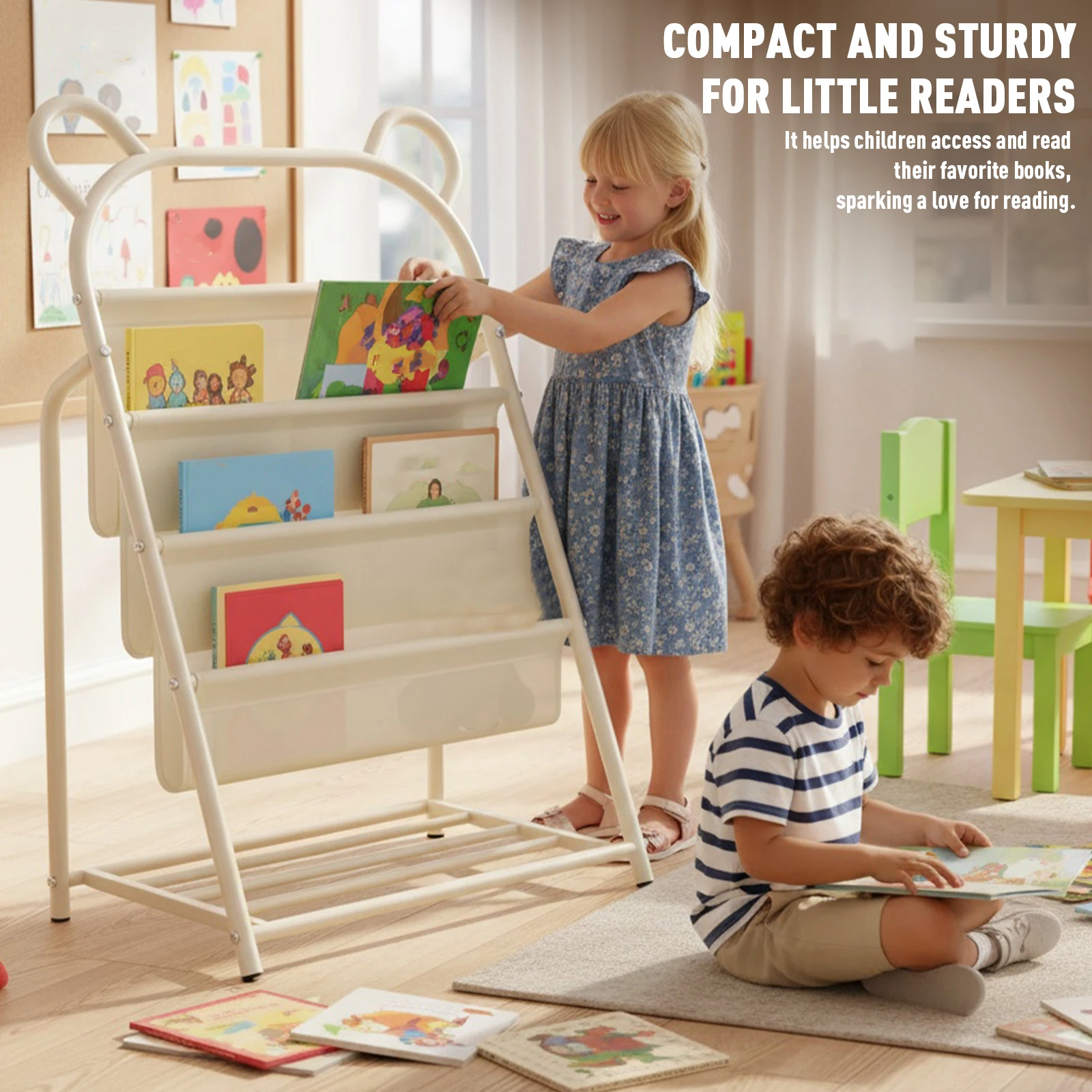 2. Efficient Book Display and Organization: With an open design that lets covers shine, this metal kid display bookshelves unit keeps reading materials tidy in classroom libraries or kids’ rooms and inspires a lifelong love for books.