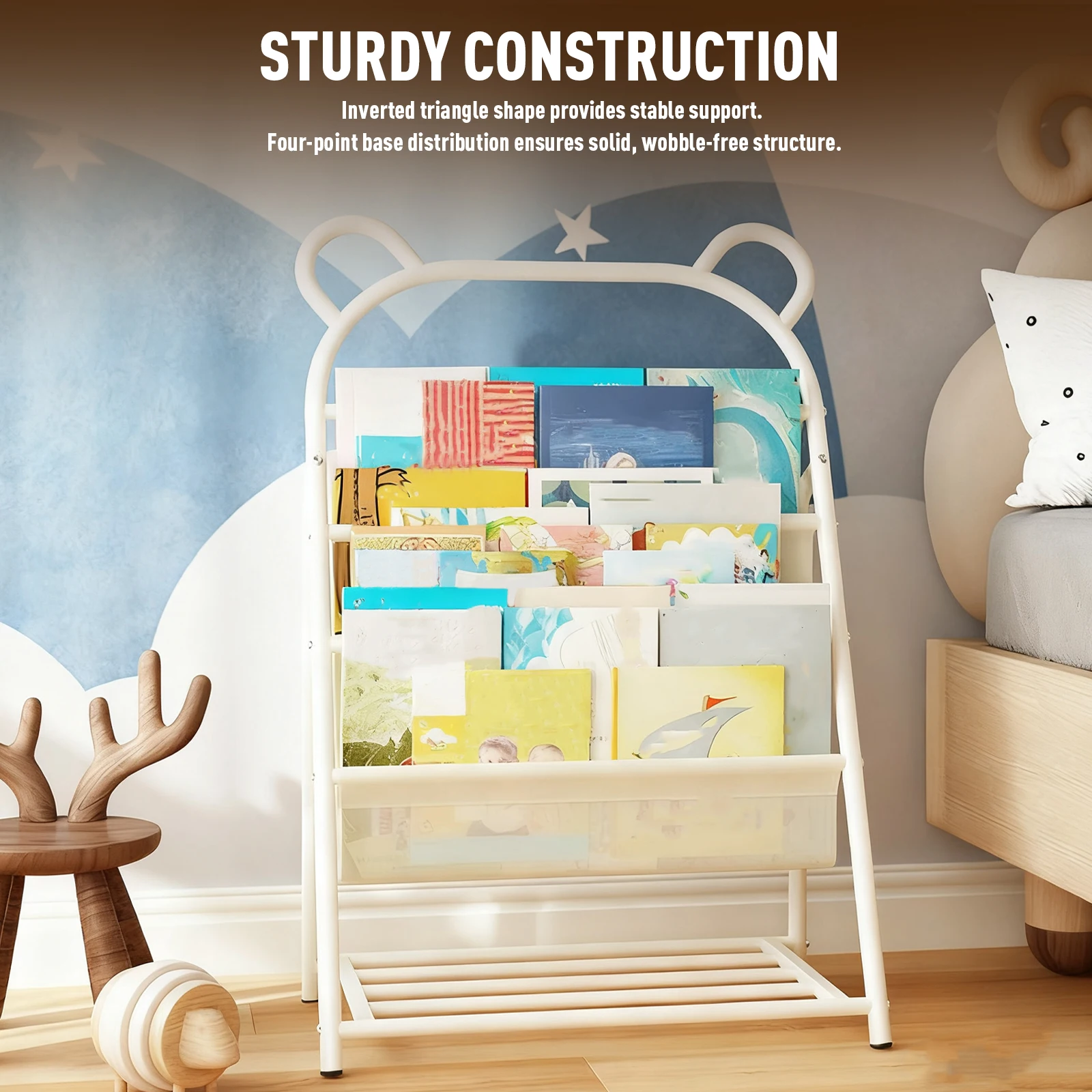 5. Versatile for Educational Settings: This multi-purpose bookshelf fits well in classrooms or home study spaces. Use it as a solid book display for classroom activities or as a charming kids’ bookshelf for personal reading areas.